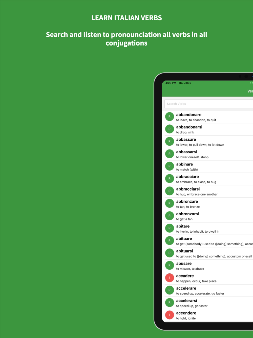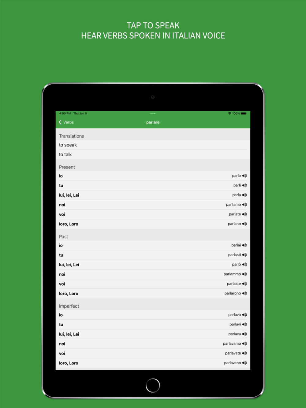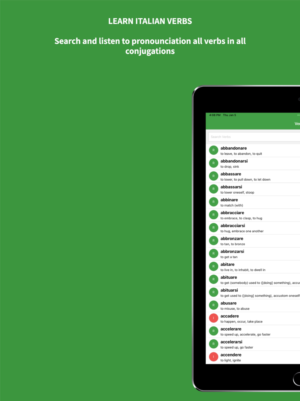 Search all Italian Verbs and find and listen to the different conjugations. All present tense verb conjugations are free!
