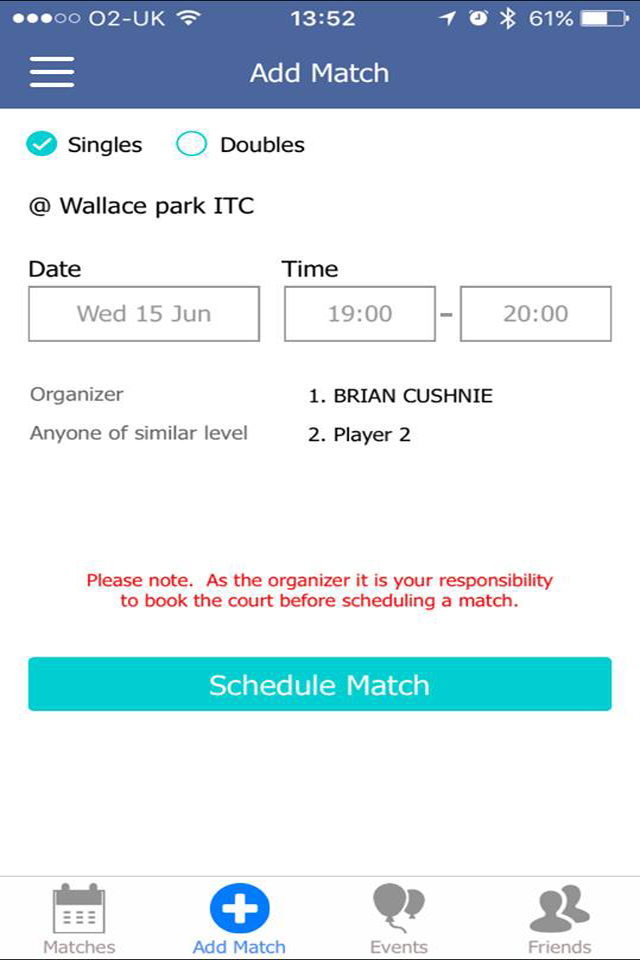 The ‘Play More Tennis’ app allows players to book courts and see what's on at their facility. It also allows them to arrange matches, both singles and doubles, with players of a similar ability level.
