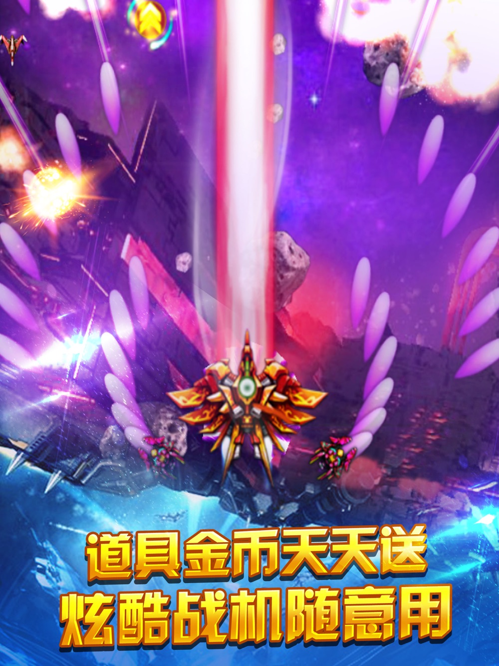 -免费下载,无需流量就能玩的雷霆飞机大战游戏,每日登录还有丰厚奖励哦 -丰厚金币奖励、飞火流星冲刺、复活、火力加倍技能让您横扫太空,尽享王者荣耀 -超华丽弹幕,复杂变幻的阵型,多种游戏模式,绝对让您战得酣畅淋漓!