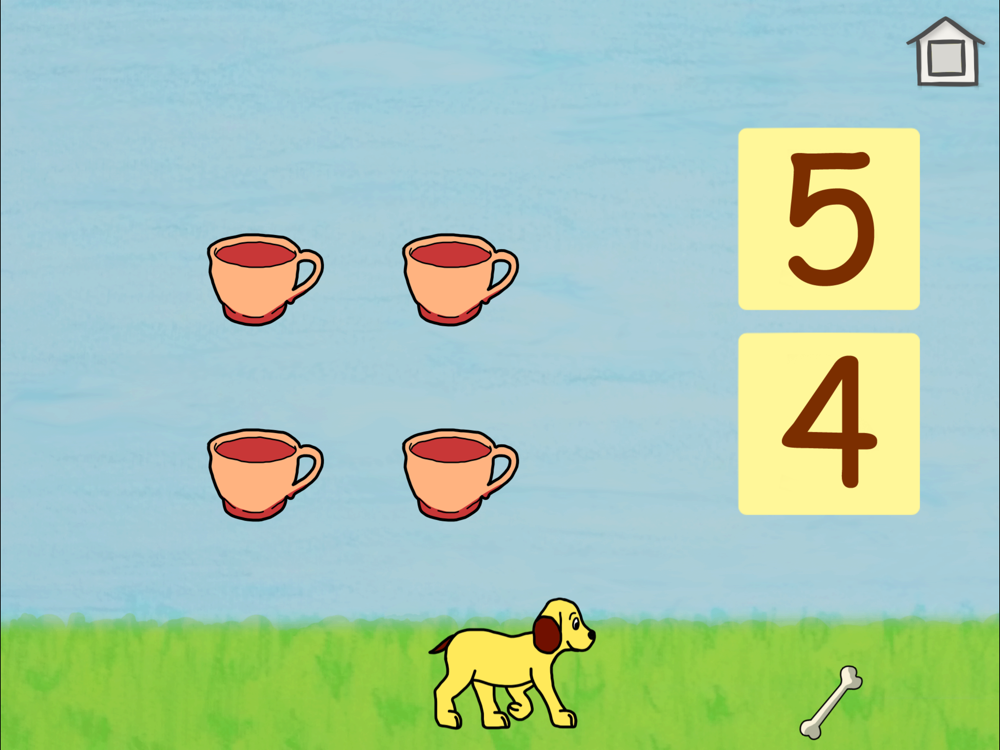 Buddy is hungry! Help him to pick up his bones! Each step to the bone is a special assignment - he will move forward if you manage to tell - how many objects are on the screen.