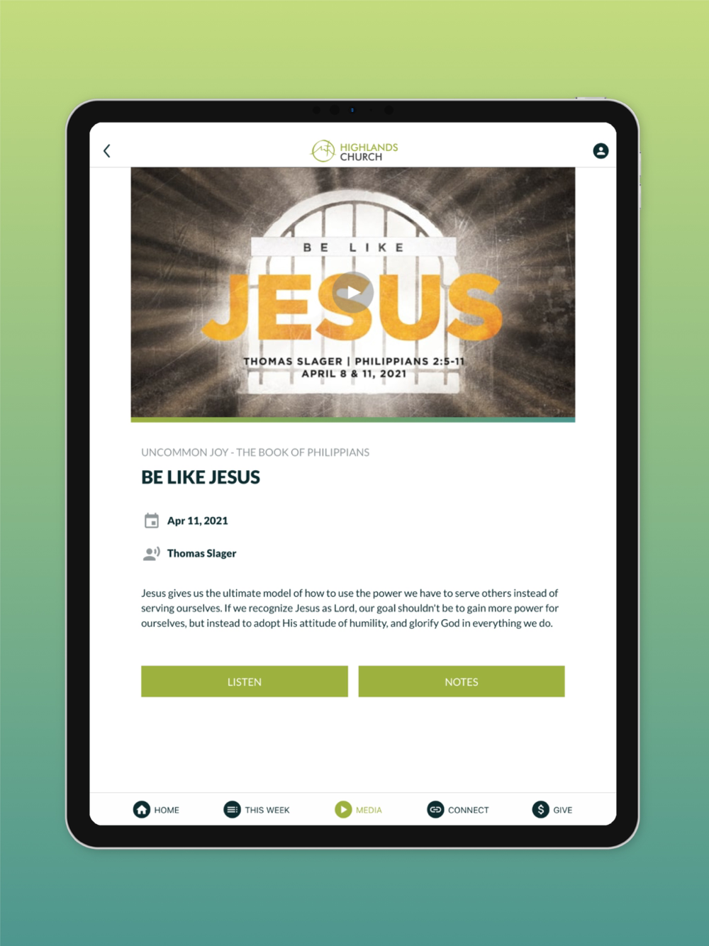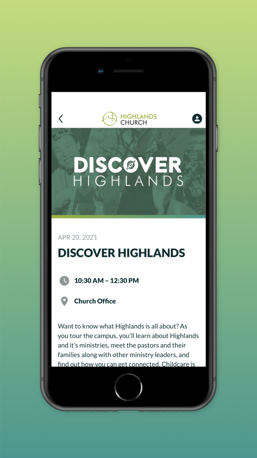 Our mission is simple: Love God. Love people. Make disciples. Connect with everything happening at Highlands Church through our smartphone app including fill-in sermon notes, announcements and events, Highlands Kids check-in, small group resources, prayer requests, online giving, and much more!
