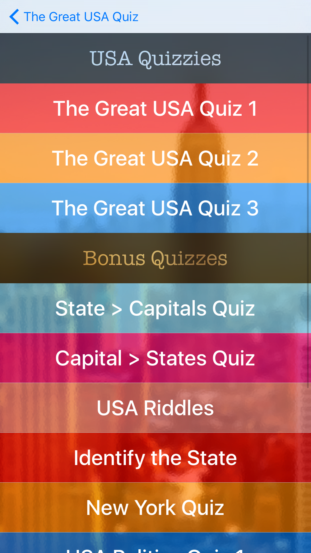 This USA quiz app will help to Increase your GK (General knowledge) of United states. United states Quiz can be also very help full to preparing for competitive exams and civil services exams like UPSC, IAS, CET, IPS AIEEE, SAT, MCAT, LSAT, GMAT, GRE, IELTS and the TOEFL.