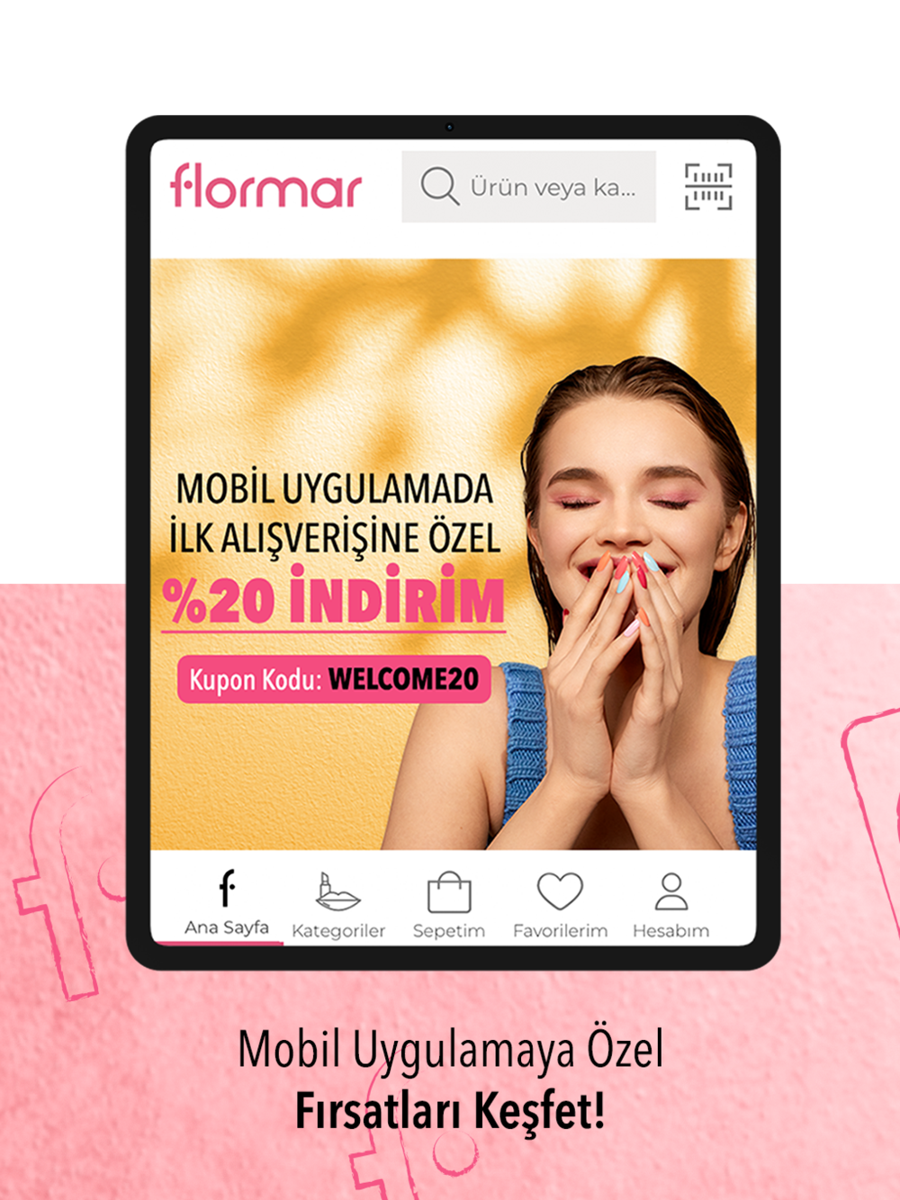 Flormar uygulamasını indir; makyaj malzemelerinden cilt bakım ürünlerine, tırnak bakımı için özel formüllerden makyaj aksesuarlarına kadar kişisel bakımına dair istediğin her ürüne ev konforunda ulaşmanın tadını çıkar! Fondöten, ruj, far, maskara, allık, eyeliner ve oje çeşitleri, sanal makyaj imkanı, indirimlerden anında haberdar olma şansı ve mobil uygulamaya özel fırsat ürünleri… Güzelliğin kapısını aralamak için uygulamayı indirmen yeterli. Hadi hemen harekete geç, Flormar’ın sana özel fırsatlarını kaçırma!