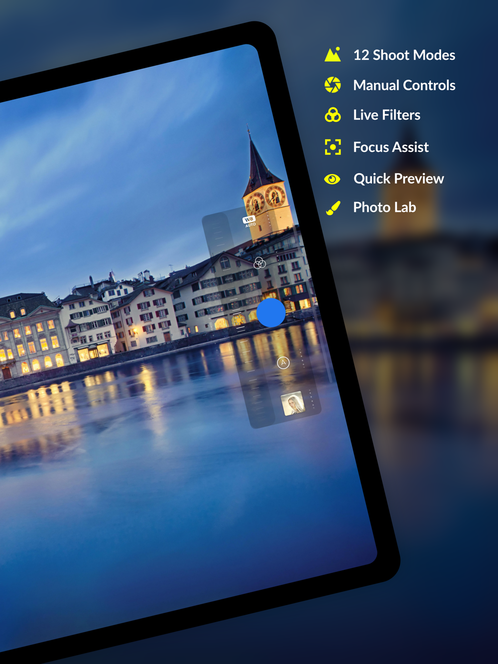 FOKUS allows you to shoot in different modes such as landscape mode, macro mode, sports mode, night scene, sunset scene, or other modes according to the scene conditions; moreover you can beautify your photos with its built-in 30+ live filters.
