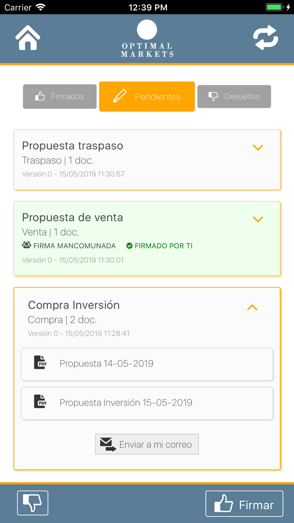 Con nuestra app podrá realizar la firma de documentos mediante firma digital bajo los mayores estándares de seguridad, así como acceder a información relevante de mercados e inversiones.