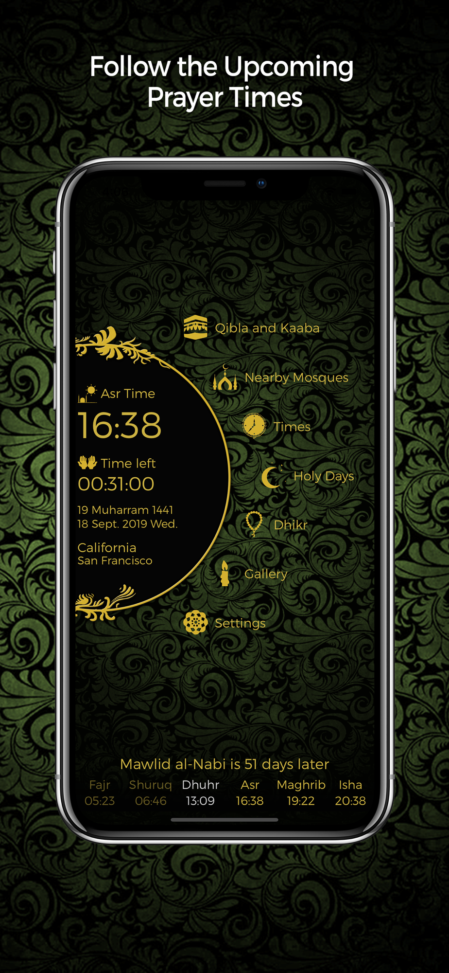 Keep track of upcoming prayer times with a convenient and understandable interface and adjustable notification times, never miss it. Find the nearest local mosque according to your location and Qibla direction with the compass. Follow the live side of Kaaba and easily perform your dhikr with dhikr matic at the same time.