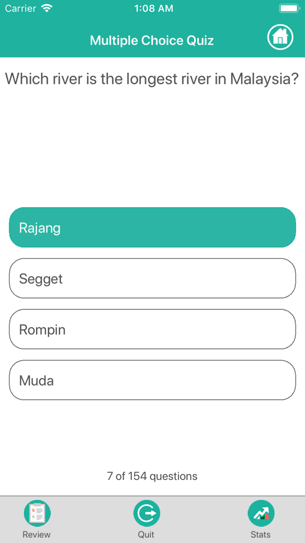 - There are 2 quiz mode. Multiple Choice Quiz and True/False Quiz