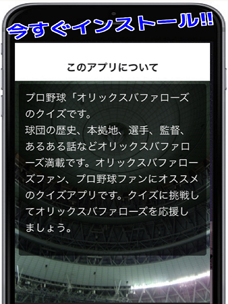 球団の歴史、本拠地、選手、監督、あるある話などオリックスバファローズ満載です。オリックスバファローズファン、プロ野球ファンにオススメのクイズアプリです。挑戦してみてください!