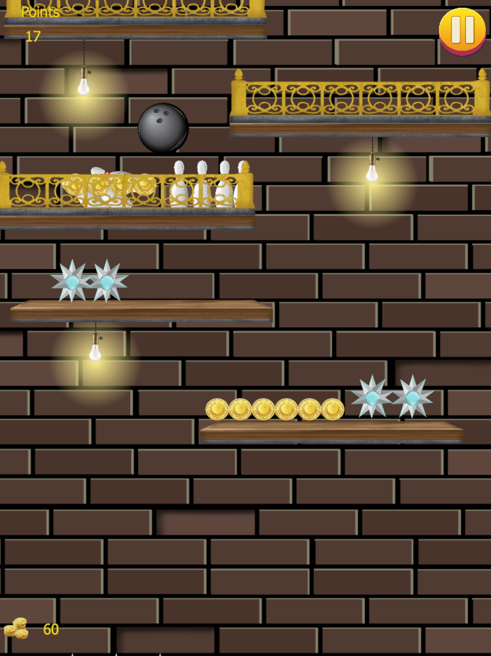 But this isn't your average match of bowling. It's a Falling Bowling contest in which you must avoid traps and obstacles to reach the deepest point in the round.