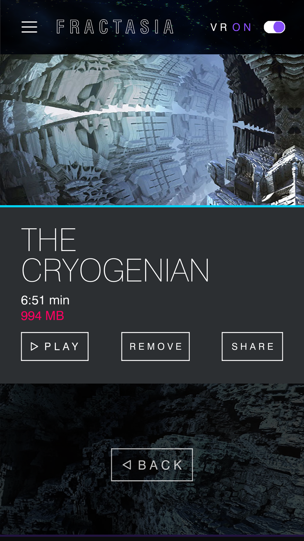 Fractasia is a stand alone app that can be viewed with a standard smartphone, or can be used with a Google Cardboard device.