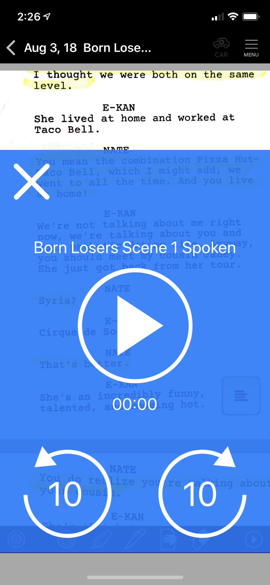 - record your lines and play them back, watching the script scroll by like a teleprompter