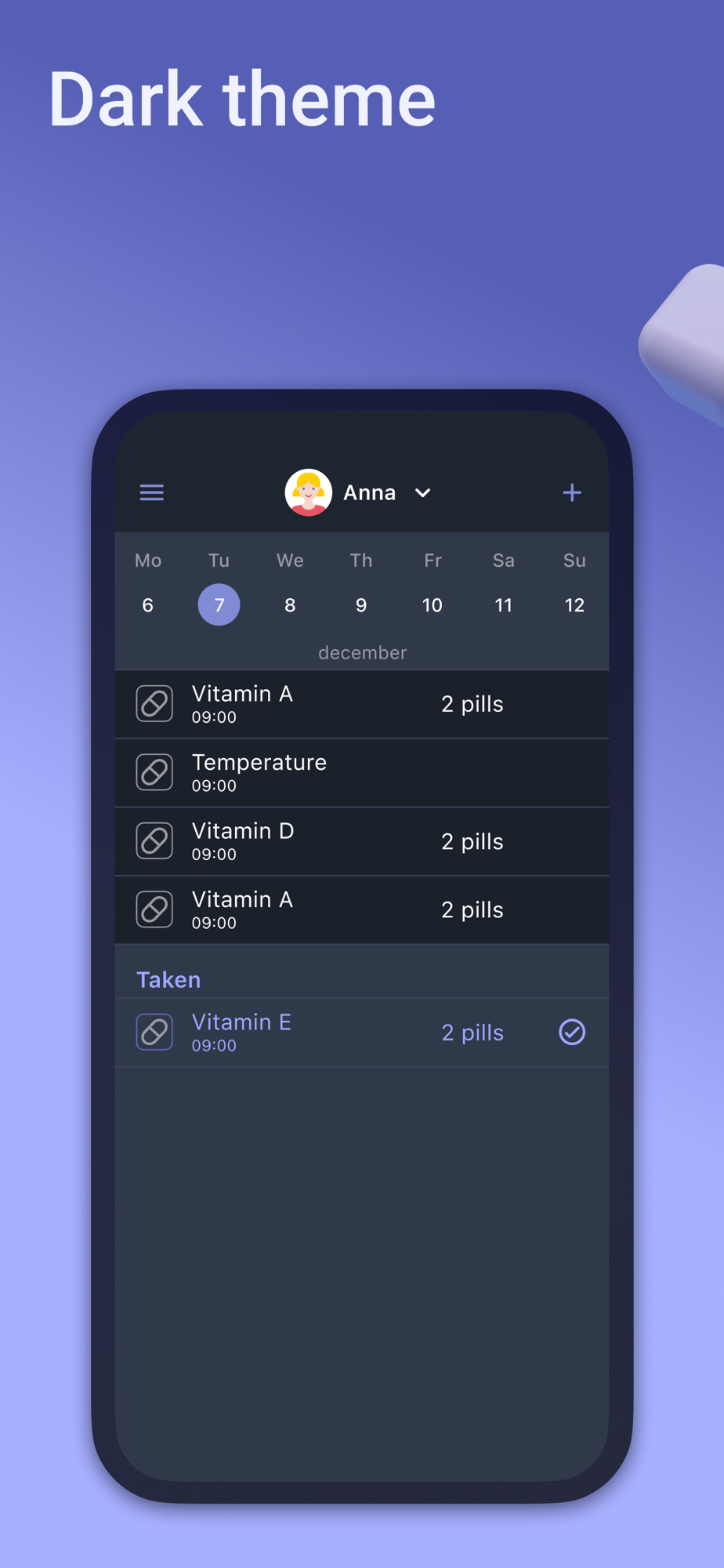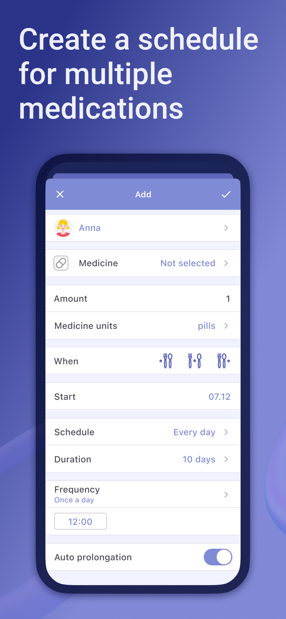 • Prescription scheduling. Schedule the exact number of times each day that you need to take your medication and the app will remind you. There is also a setting in days so that the app can remind you on a specific date.