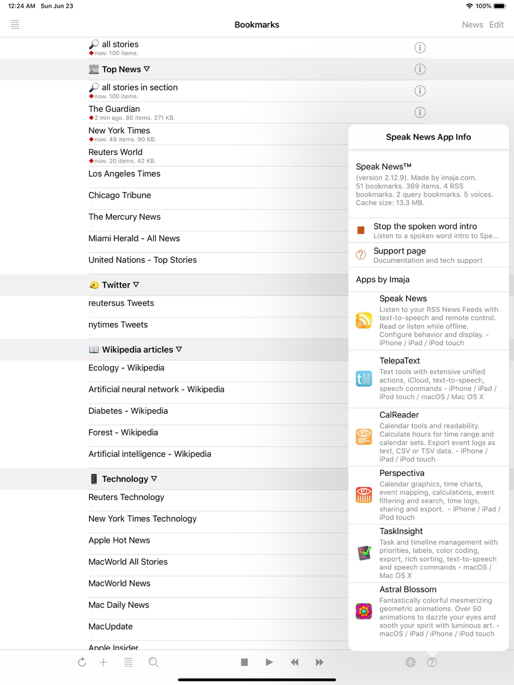 • Import bookmarks from Imaja’s Speak News RSS Feeds Library featuring a broad selection of essential and informative news feeds.