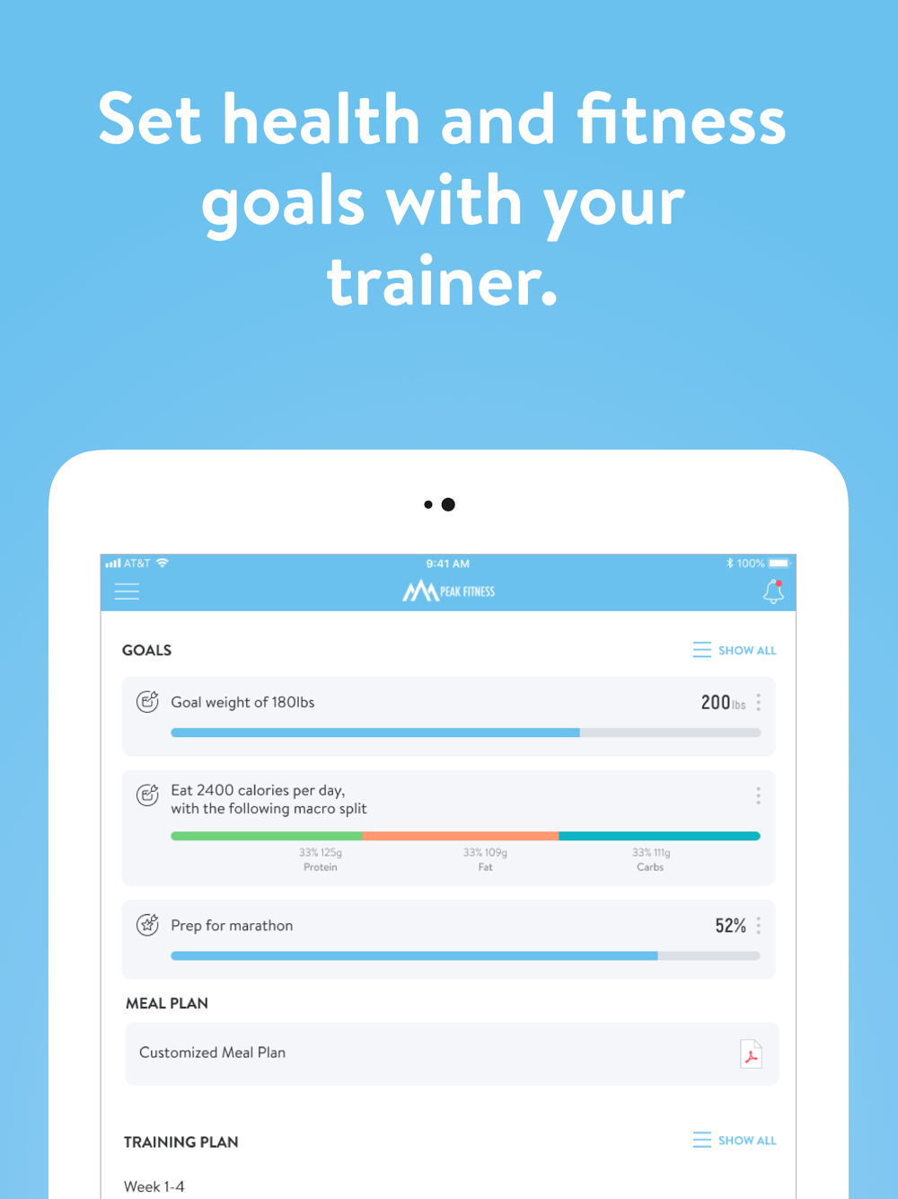 - Access meal plans if your coach sets them up