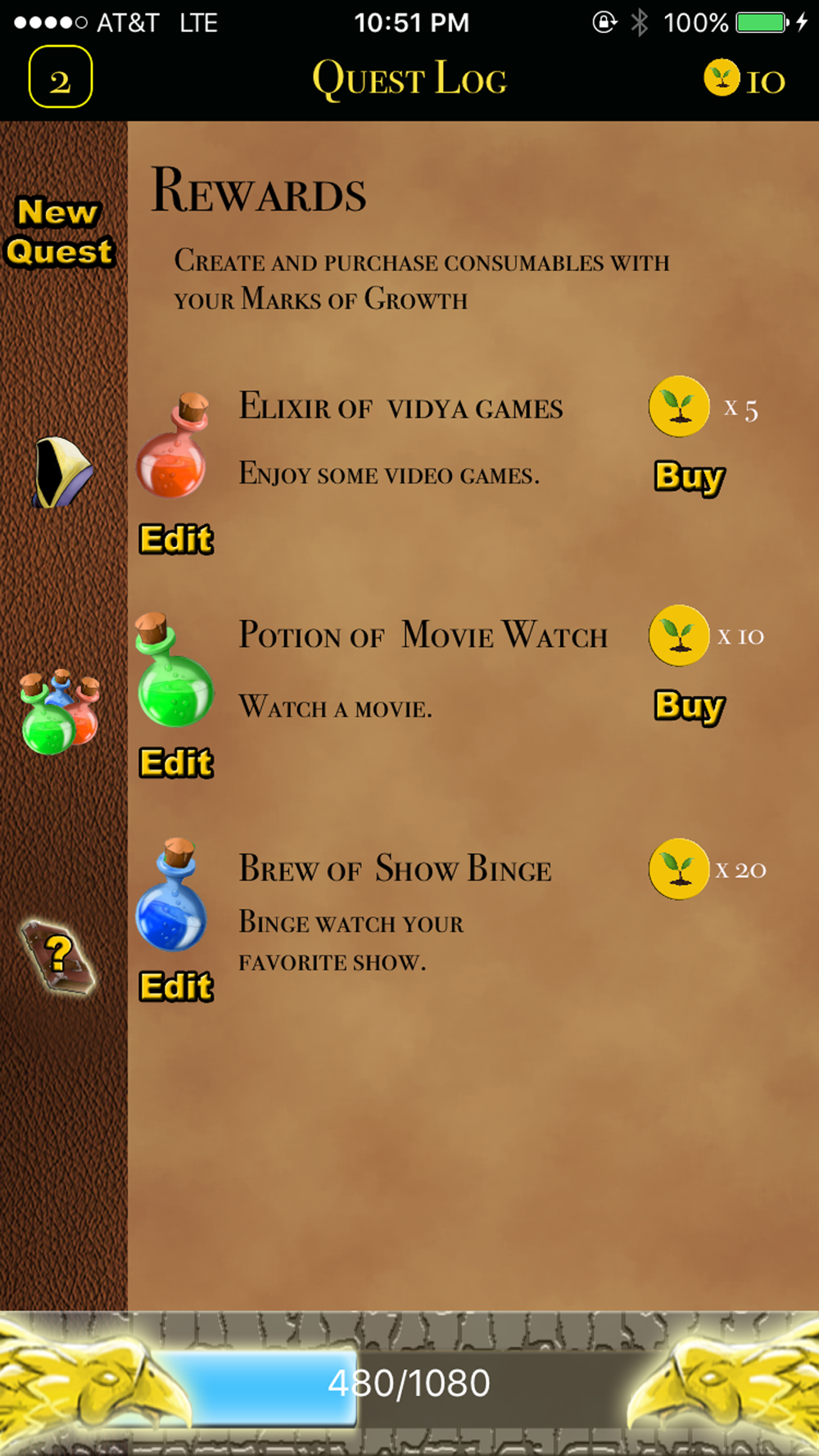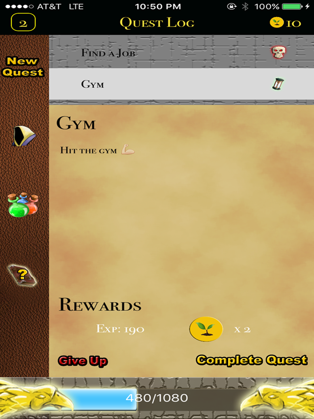 Well, now apply that feeling to your every day to-do list. Quest Log is the productivity app for gamers. Create quests, decide their difficulty, level up, and purchase consumable rewards that represent your favorite activities.