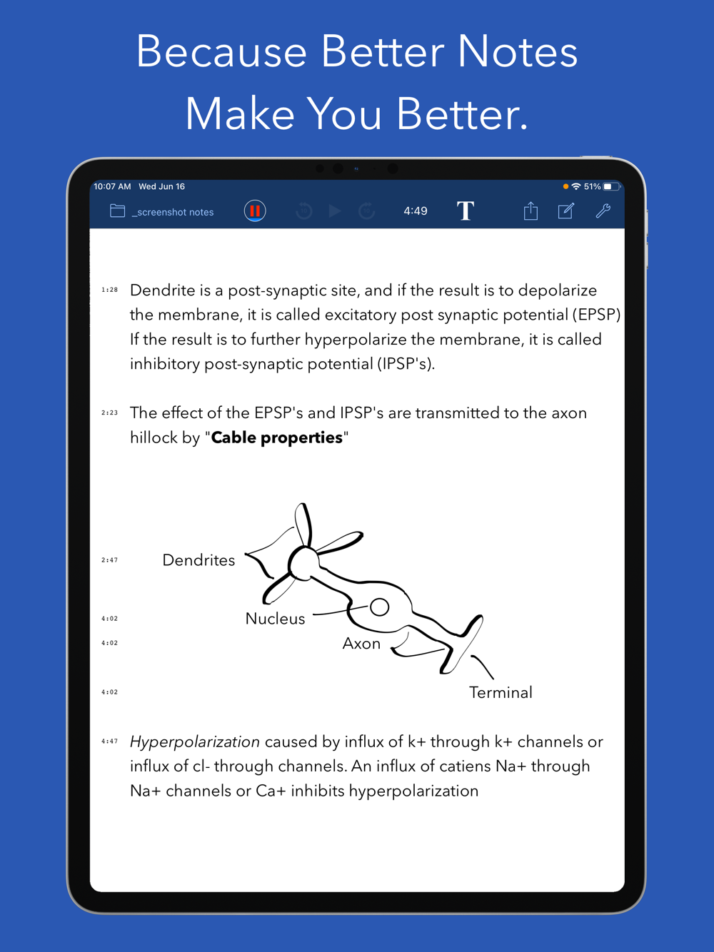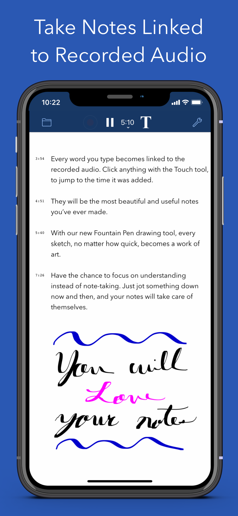 • Notes are linked with the recorded audio at the time they were taken