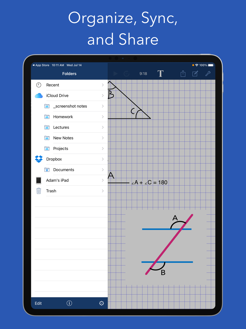 • Automatically sync between devices using iCloud or Dropbox
