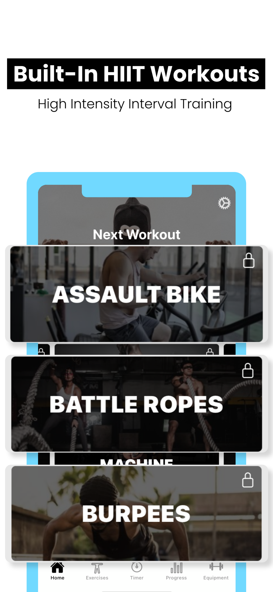 - Supplement your workouts with our built-in HIIT Programs (High Intensity Interval Training) for shedding fat and keeping focused.