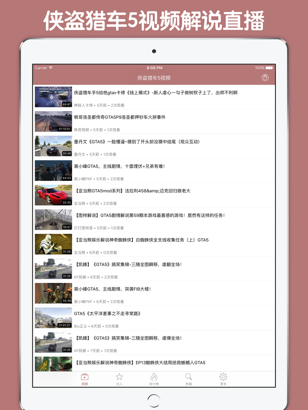 国内最全的侠盗猎车5视频站,每日更新视频比赛与视频教学集锦,让你随时随地的观看侠盗猎车5视频,是你的居家旅行必备掌上视频APP,从此再也不用担心错过精彩视频了!