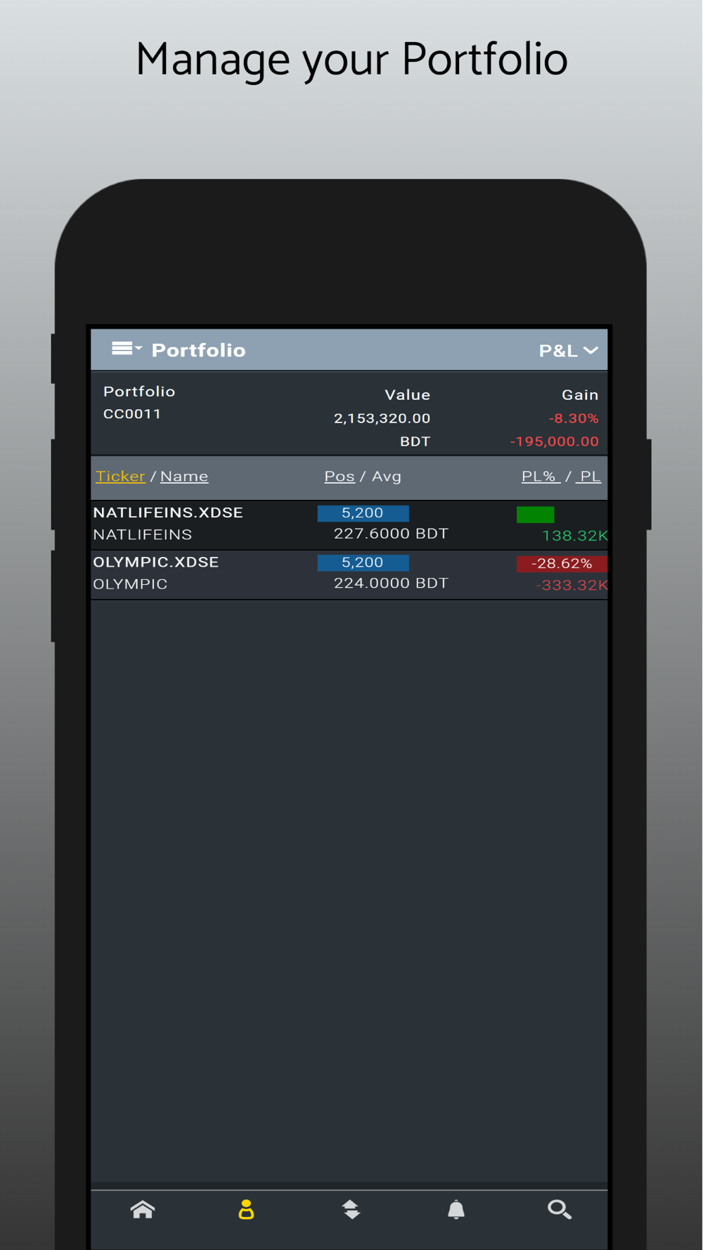 Ultimate awareness companion for your trading activities. Access your trading account (get registration from broker) and portfolio from your mobile. Get alerts, orders status and more in real time. Be notified even when you are away.