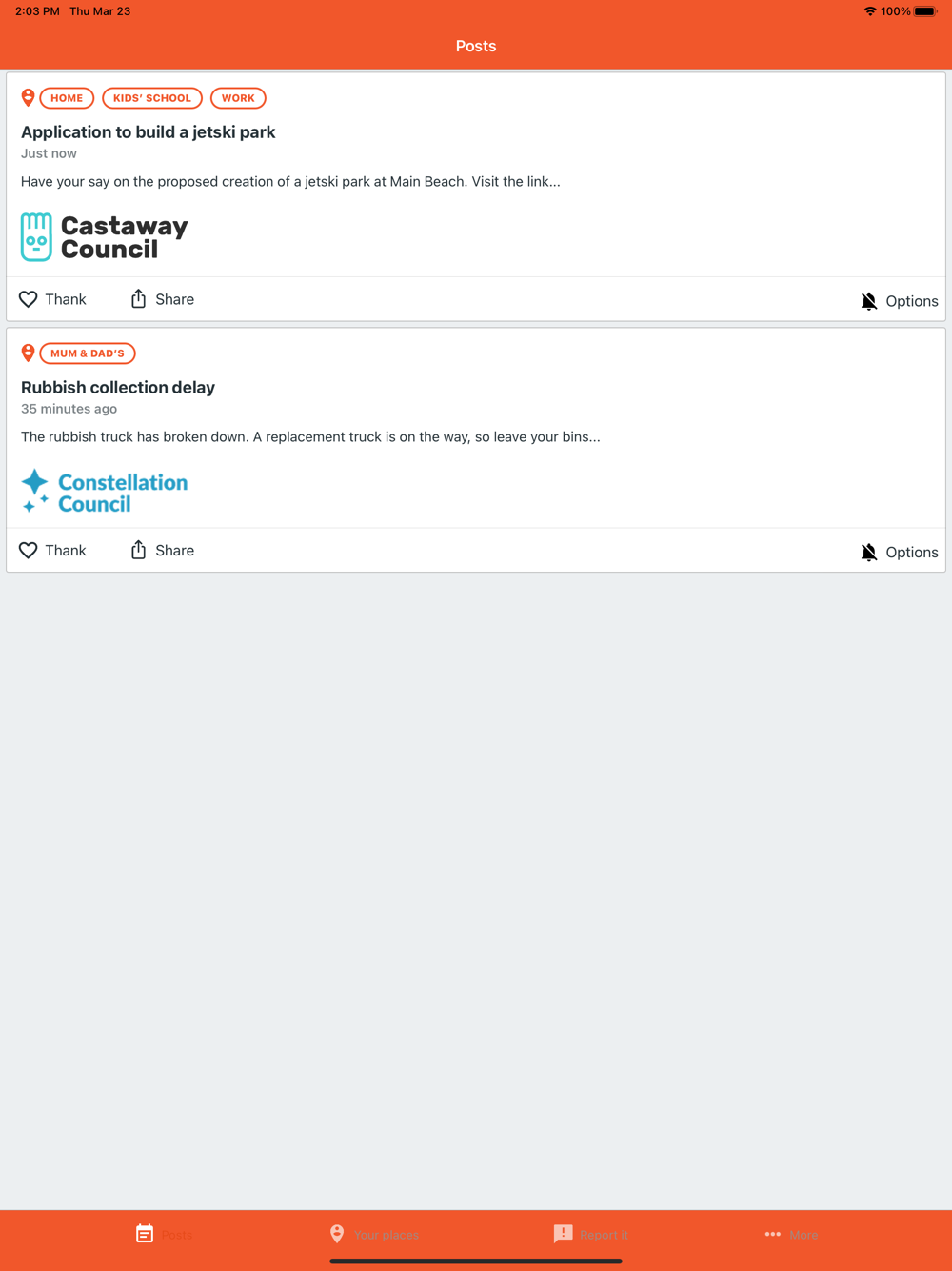Through Antenno you can receive up-to-date, relevant notifications for places and topics you care about. Each Antenno post shows the logo of the council or authority publishing it, so you know the source of the information. And if you spot a problem or have a suggestion, you can report this to authorities quickly and easily, helping to improve your community.
