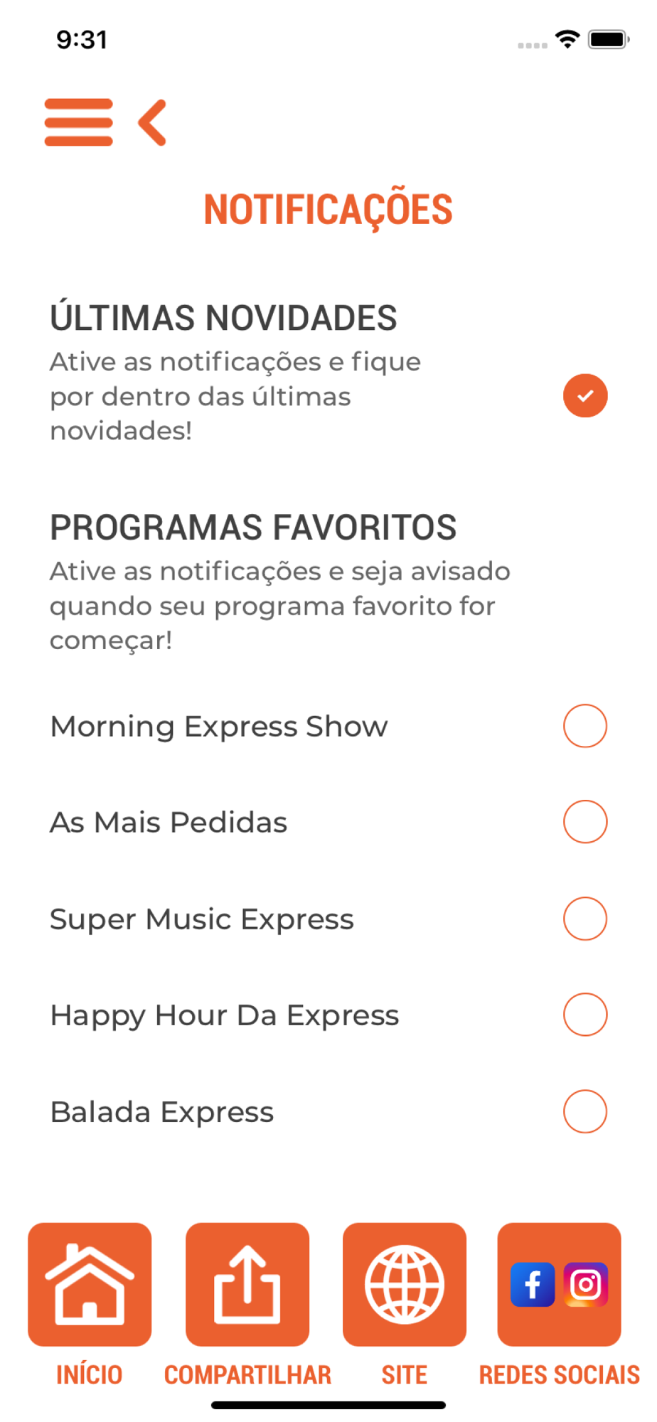 Aplicativo da FM Express, uma emissora da Rede Pampa de Comunicação.