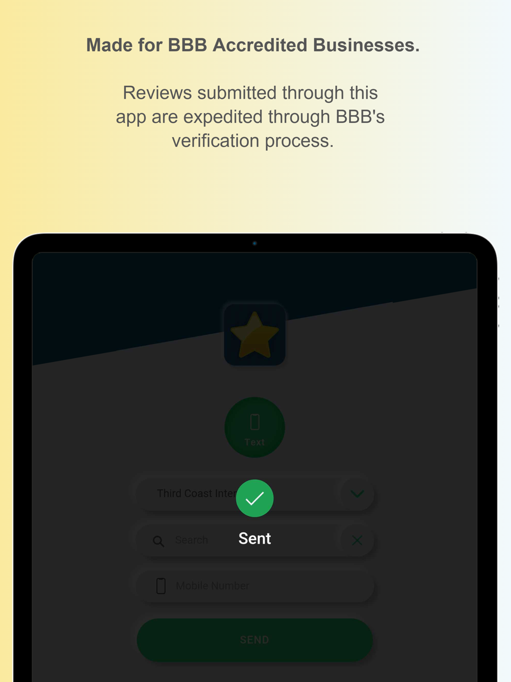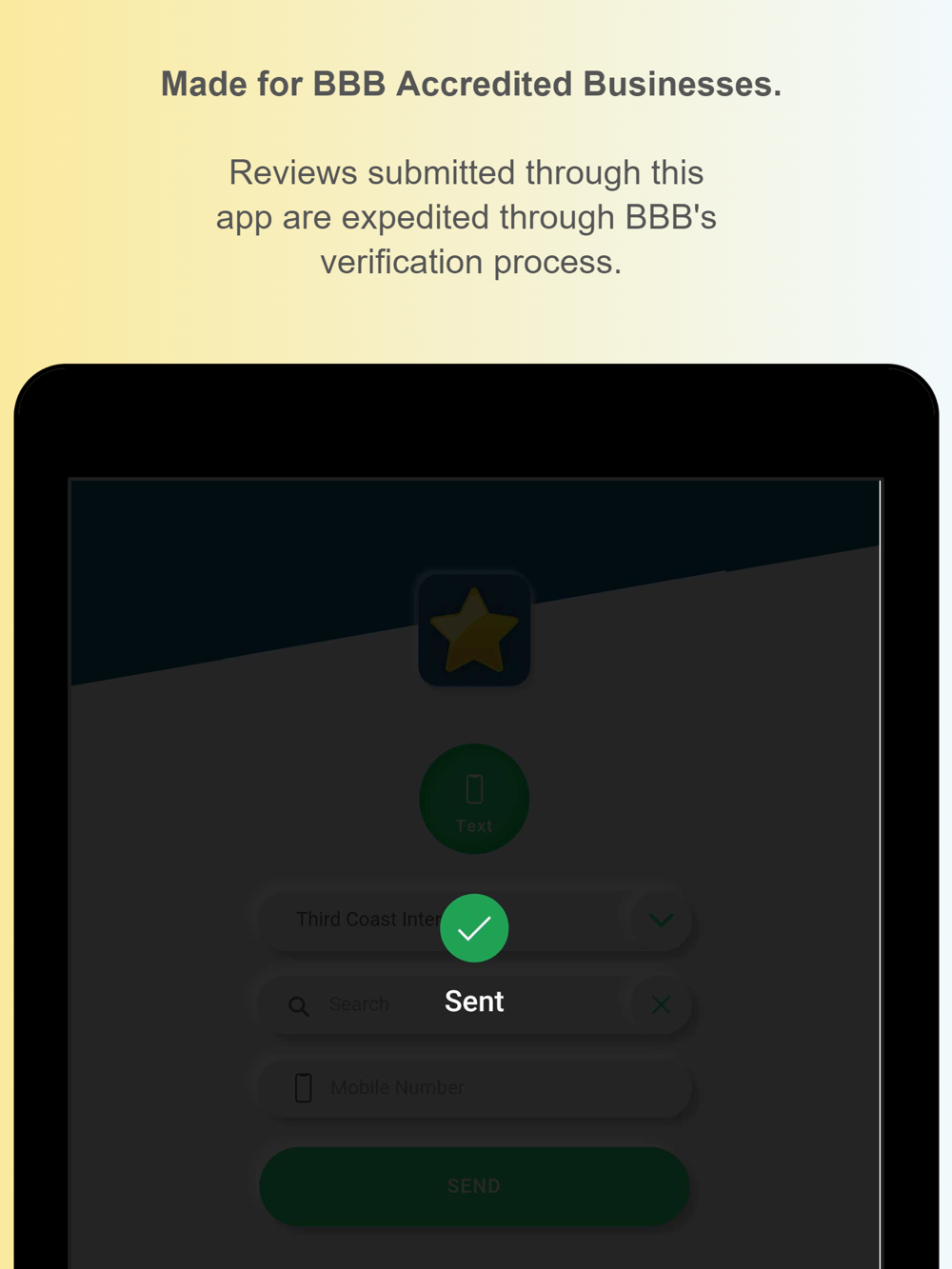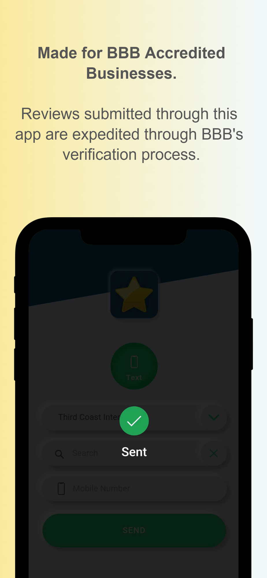 Your Reviews empowers participating Better Business Bureau accredited businesses to request customer reviews at the point of service. From Your Reviews, customers receive a text and submit their review directly to the participating Better Business Bureaus. The customer review is pre-verified and ready for publication once it has been processed by the local BBB office. Getting online BBB customer reviews is as easy as sending a text message.