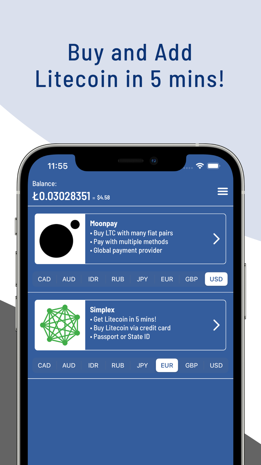 • Buy Litecoin directly in Litewallet and get the deposit within minutes