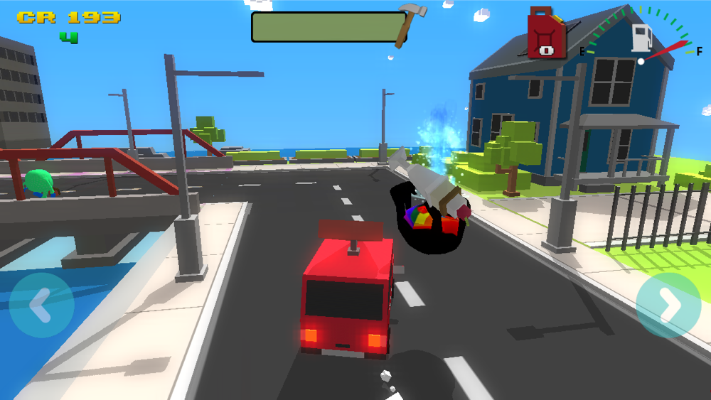 Something must have really annoyed you. Drive your car across the city and along the coast and hit as many of the 'Flump' Citizens as you can. Smash oncoming traffic out of your way. Collect coins to spend on the Prize-o-Matic machine to win new cars and spare fuel cans.