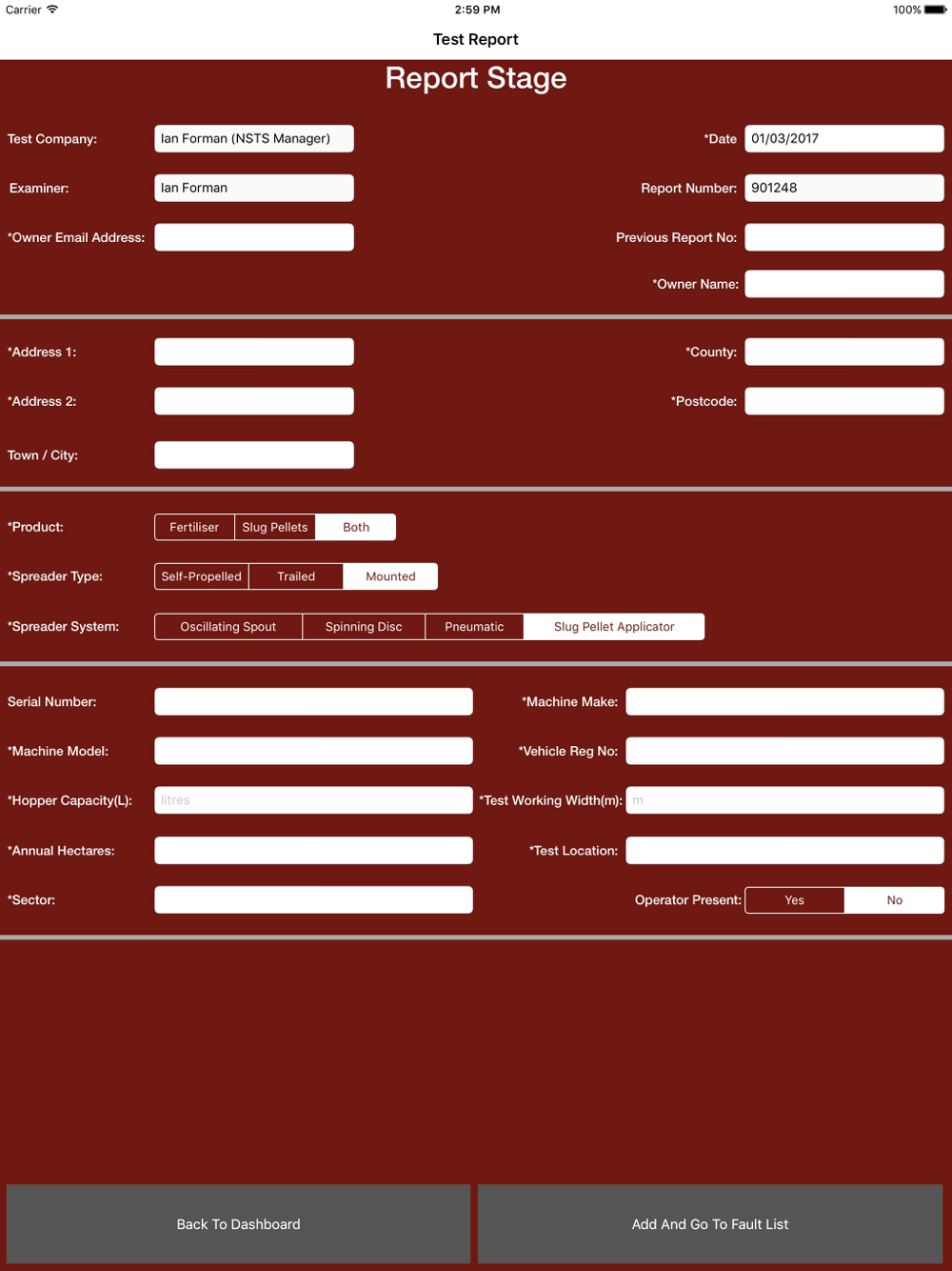 This application allows users to electronically complete fertiliser sprayer tests and submit these to NSTS similar to the current paper based system.