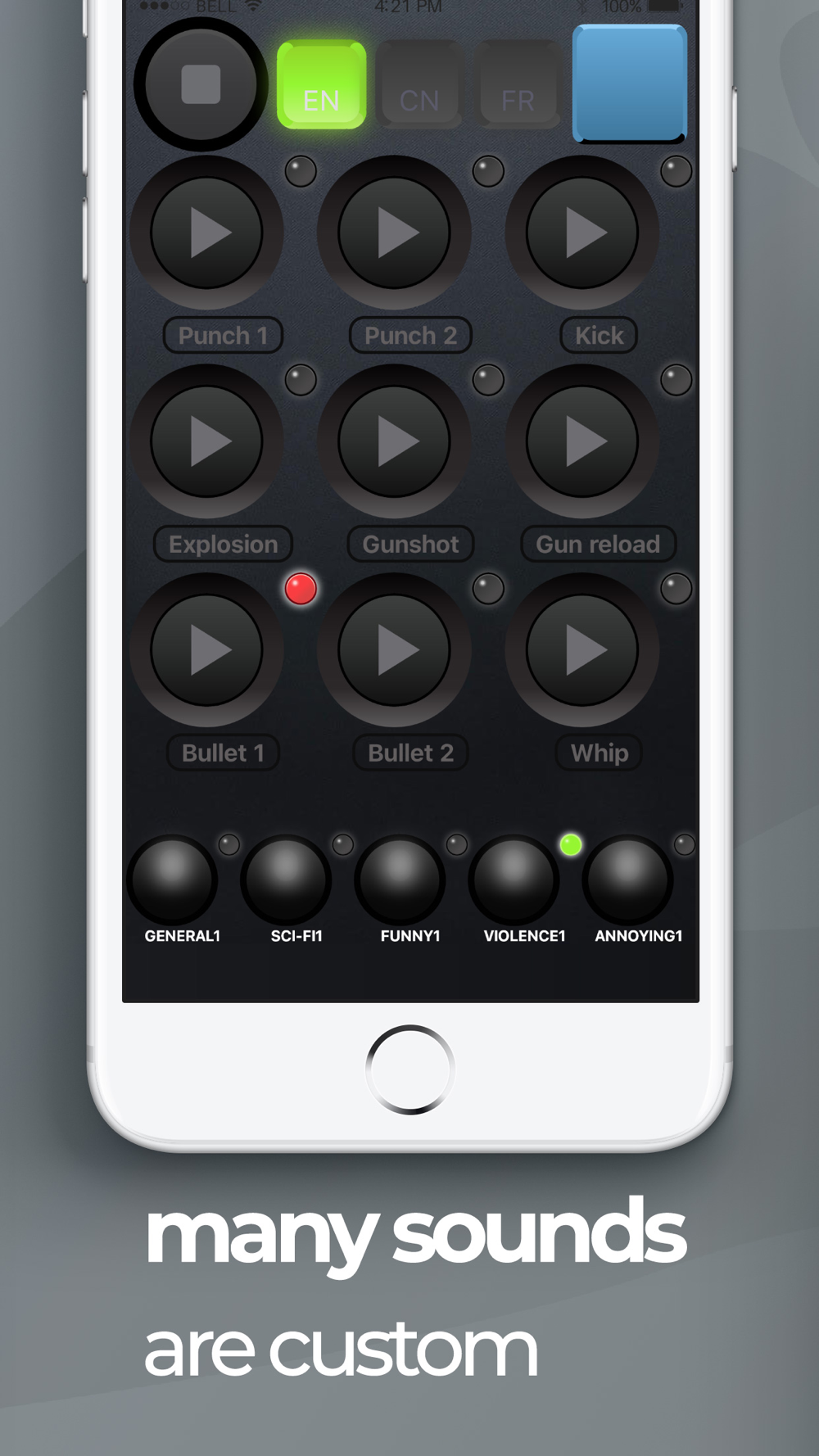 Not the usual recycled sounds you'll find on every single soundboard app, the vast majority of these sounds have been either specially recorded or specially designed just for this app.