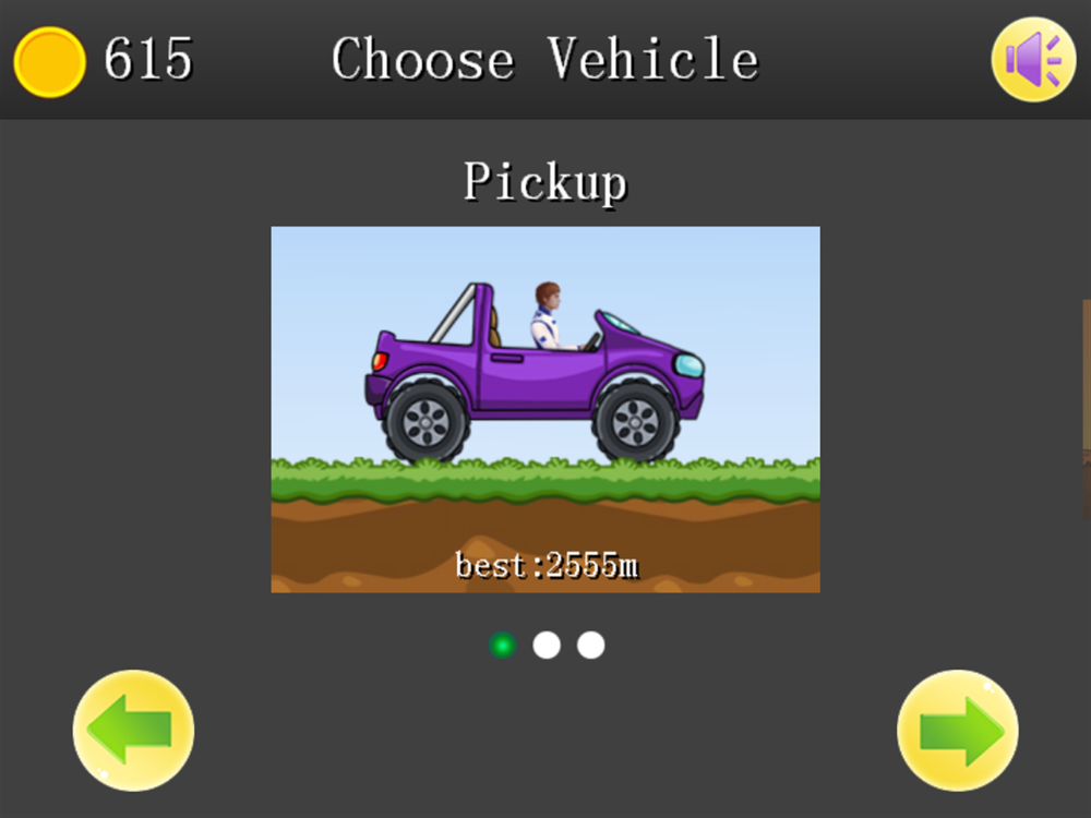 驾驶你的越野车挑战各种独特的上坡和下坡道路,面对不同的场景你可以选择不同种类的越野车,你拥有皮卡车,吉普车以及跑车等越野车,通过油门和刹车按钮控来制你的车辆进行爬坡。收集金币用来改装你的赛车,改装可以帮助你的赛车行驶到更加远的距离,从而获得更高的积分。在驾驶的过程中要时刻注意自己车辆的燃油使用情况,要在燃油耗尽之前行驶到下一个加油站。对于喜欢赛车游戏的玩家来说,这是你最完美的选择!