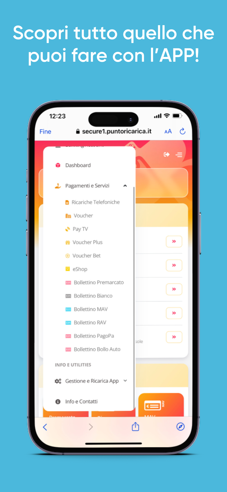 Puntoricarica s.r.l. è una società di utilities e di servizi ad alto valore aggiunto operante nella distribuzione di prodotti e servizi on line al cittadino attraverso una rete di affiliati dislocati in tutta Italia.