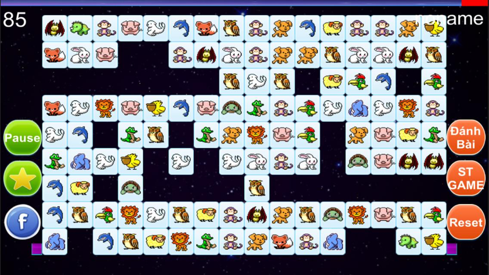 - Remove 2 monster animal with the same kind which can be connected within 3 lines.