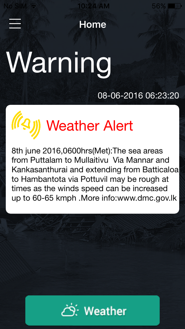 - Location: This APP will facilitate location based alerts very soon. We have built in the location map for you to know where the alert level is most relevant even if you are not in that area once DMC of Sri Lanka announces it.