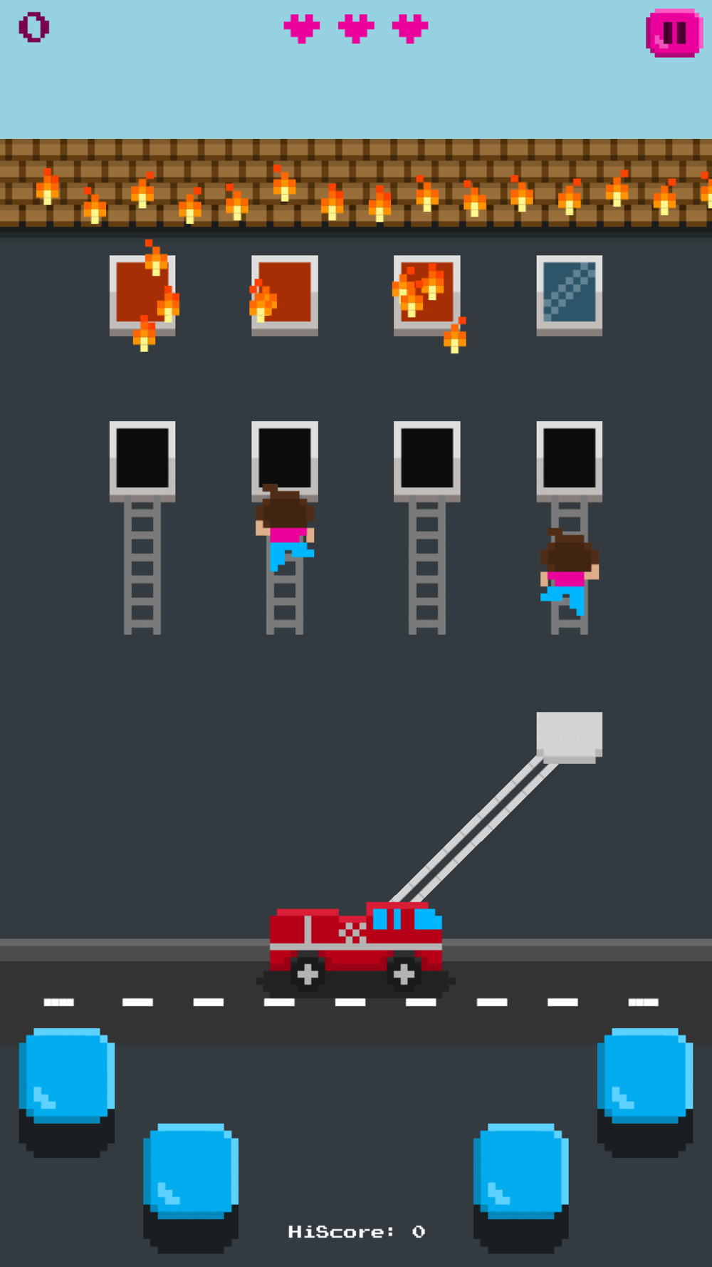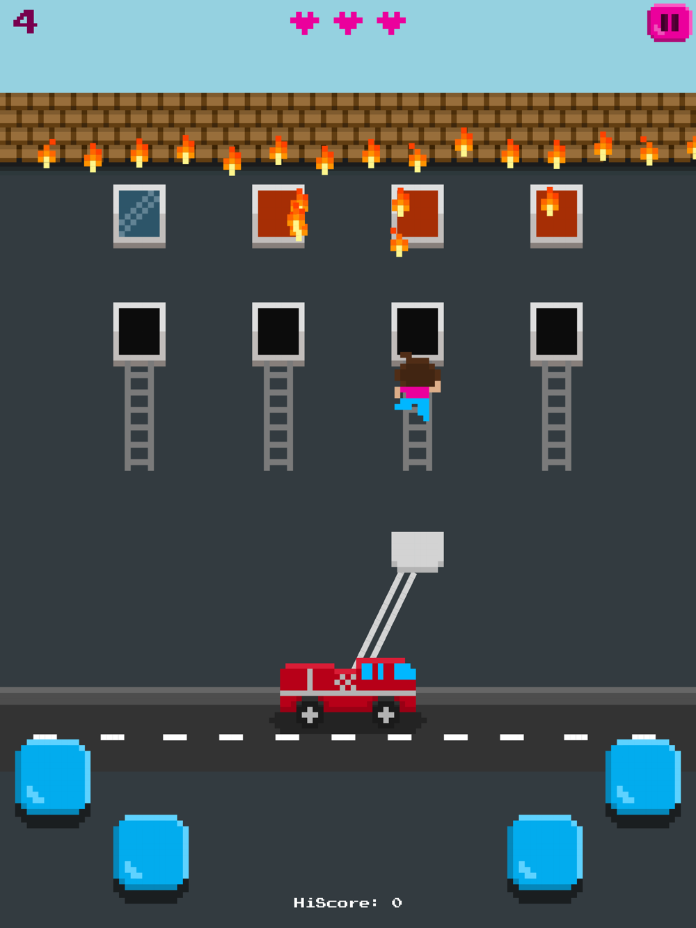 On Fire is a fast paced, casual arcade game. The building is on fire and you operate the ladder on the fire truck and your job is to save as many people as you can from falling to their death.