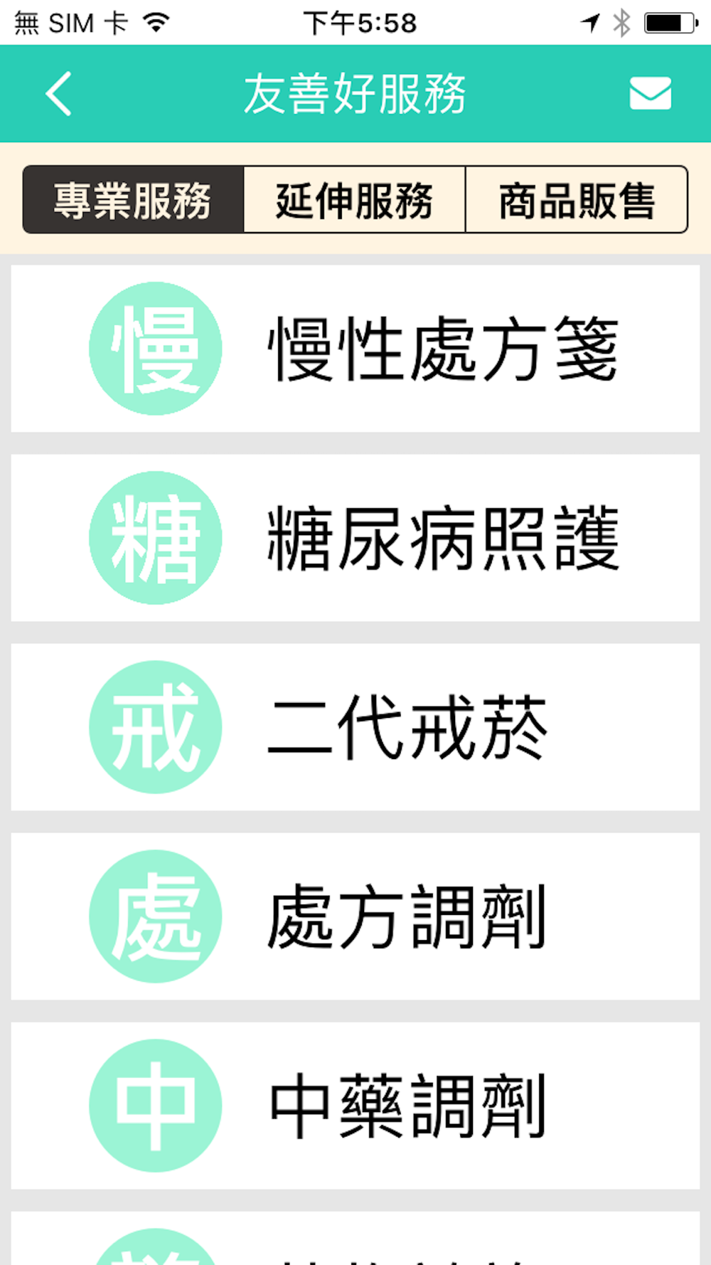 慢性處方箋、糖尿病照護、二代戒菸、處方調劑、中藥調劑、藥物諮詢、