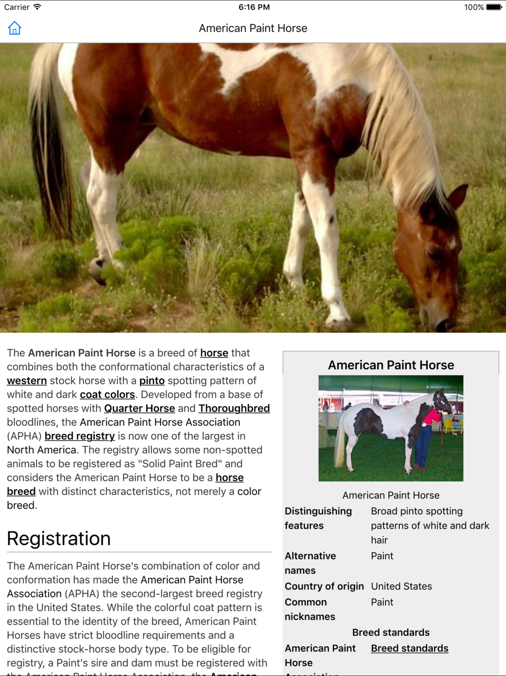 We have worked diligently to select the best photos and create content that is engaging, easy to understand and relevant. CHI Encyclopedia of Horses looks stunning on both iPhone and iPad.