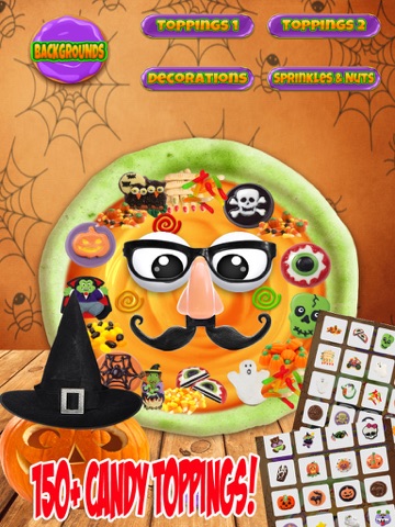 #1 Candy Pizza Game! 150+ Yummy Halloween Candy Pizza Toppings like Witches, Ghosts, Pumpkins, Ghouls, Frankenstein, Zombies, Mummies, Spiders, Vampires, Candy Corn, Chocolate Bats, Skeletons, Gummy Worms and more! ALL TREATS, NO TRICKS!
