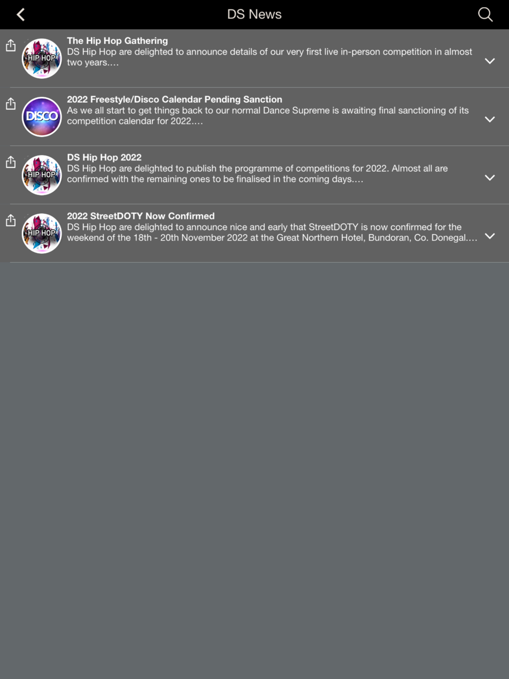 With the all new DS App you can register your dance school, reserve your competition places, contact DS, share your photos and even get directions to the next competition using our 'Directions' within the App.