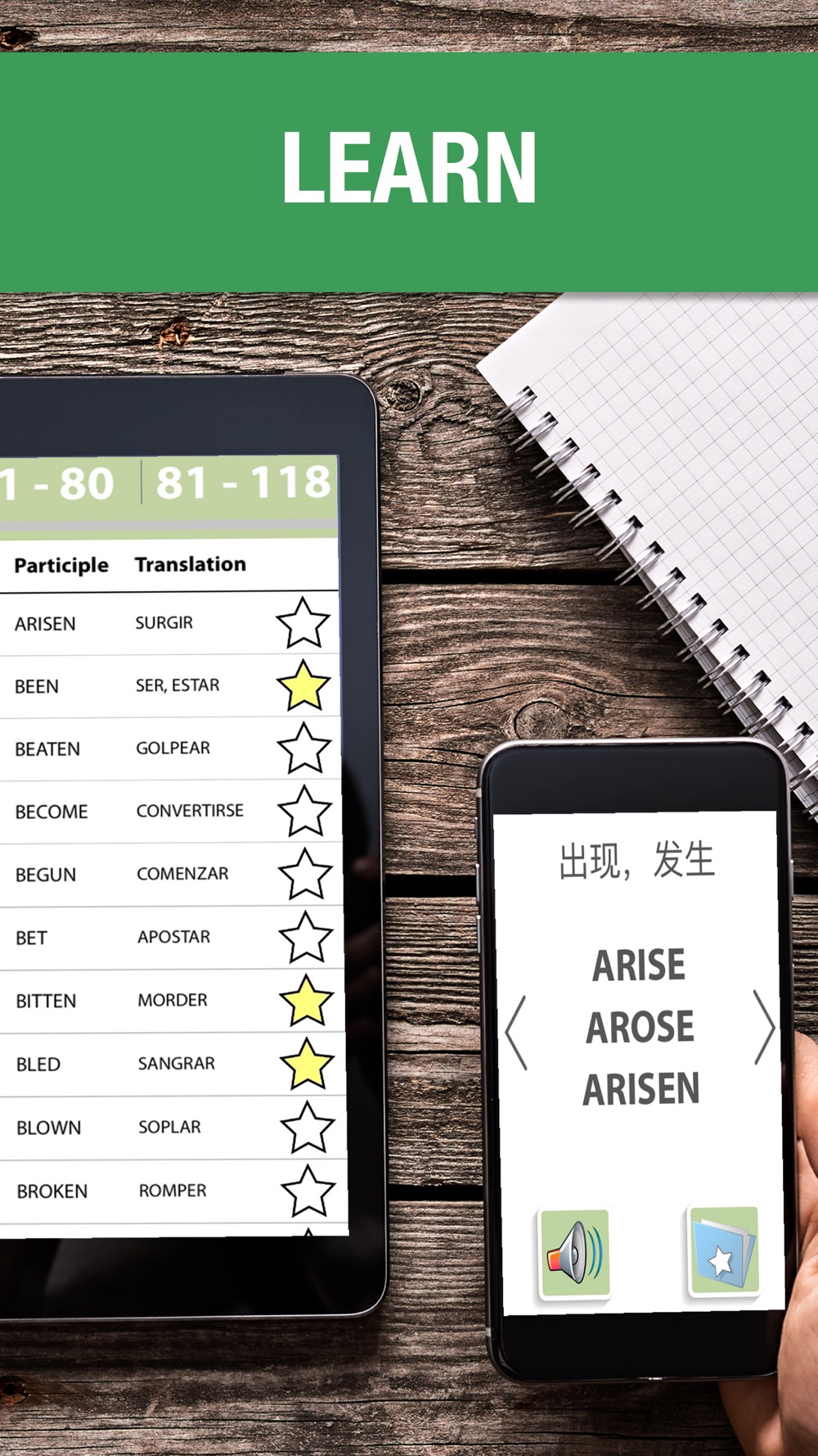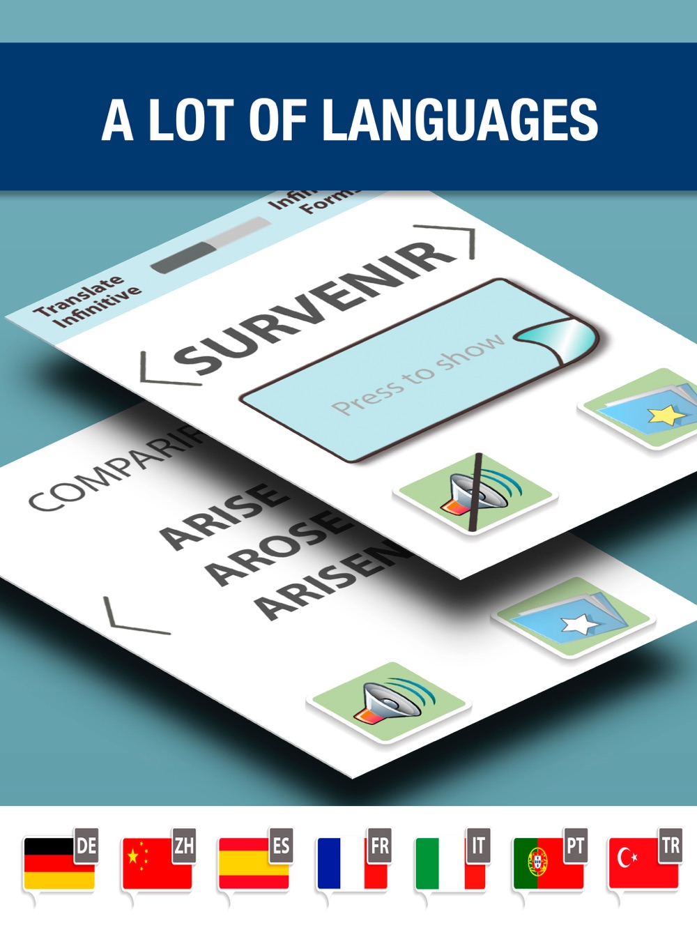 "あなたが英語不規則動詞の過去のすべてのフォームを知っていますか?私たちは、あなたが学ぶのを助ける見直し、英語不規則動詞の過去形についてのあなたの知識をリフレッシュします。今すぐダウンロードして、いつでも好きなときやどこでも英語を勉強し始めます。あなたがより困難であると考える動詞は後で修正するなどのお気に入りに保存します。 7つの異なる言語での研究 - 、スペイン語、フランス語、トルコ語、ドイツ語、イタリア語、ポルトガル語、中国語。