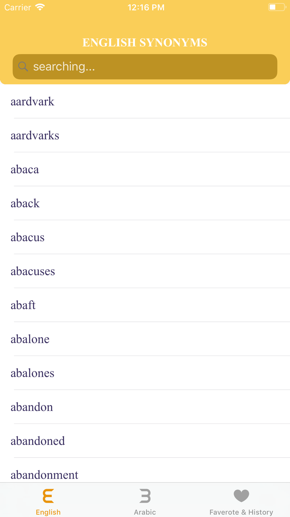 -> History Feature - each word you ever viewed is stored in history