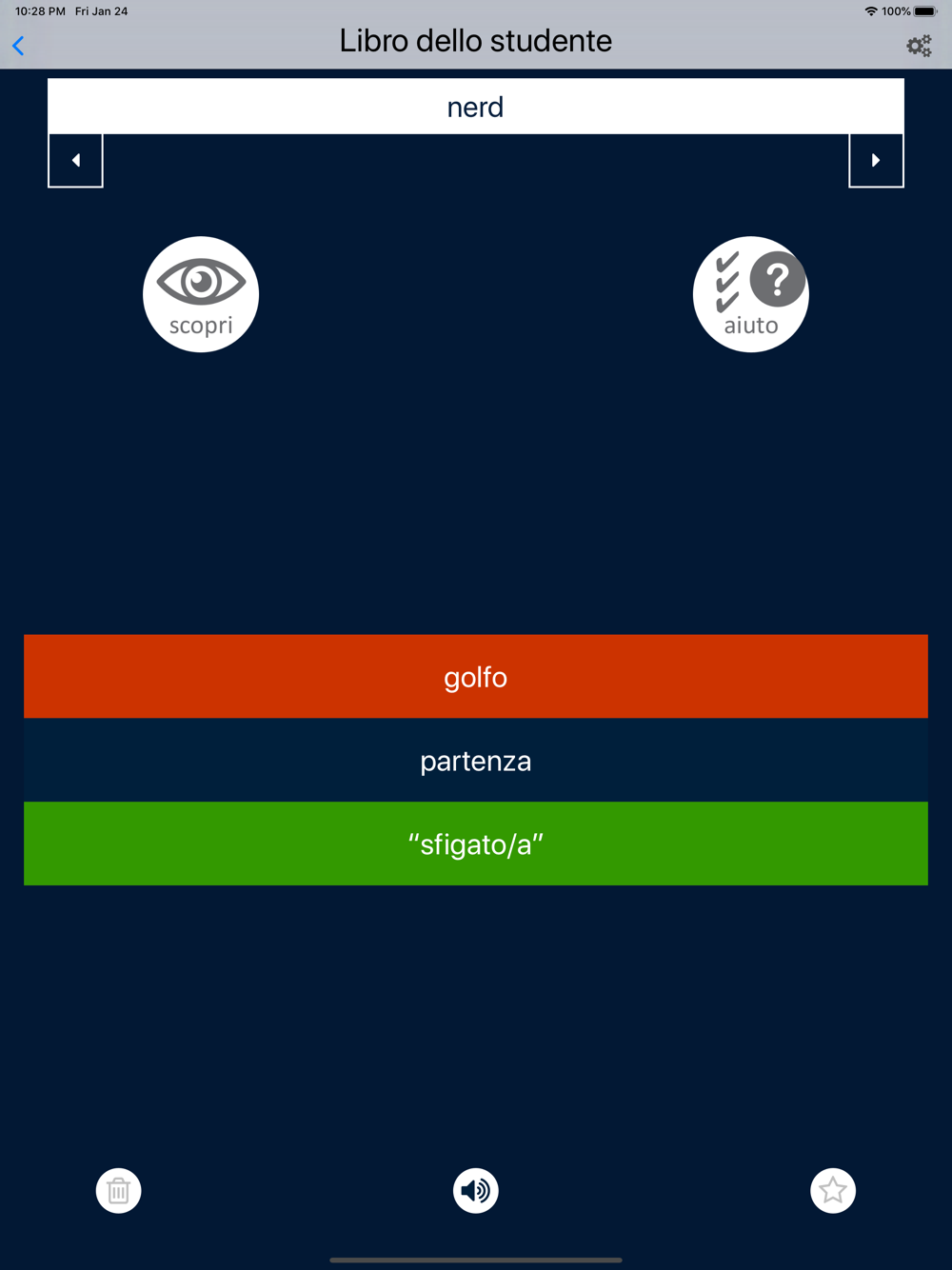 The app Glossario interattivo – L’italiano all’università 1 is ideal for students who want to exercise their knowledge in an interactive way and for teachers who want to add a playful element to their lessons.