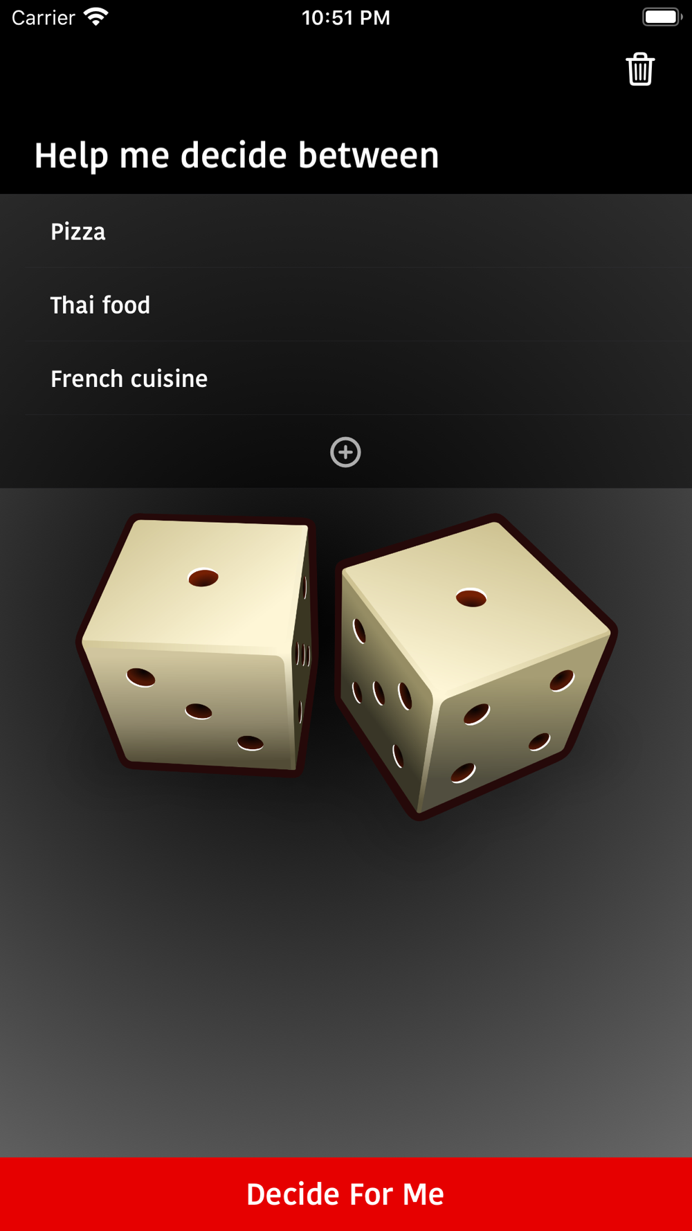 How does it work? You enter all the options you have available. When you press decide then "Help me decide between will pick your answer.