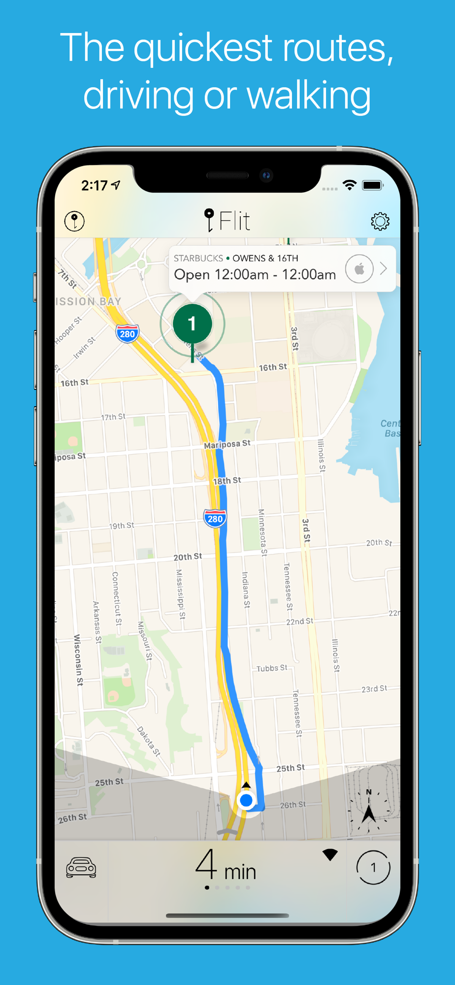 Flit is the fastest way to find a Starbucks. Think your favorite maps app is faster? Think again.