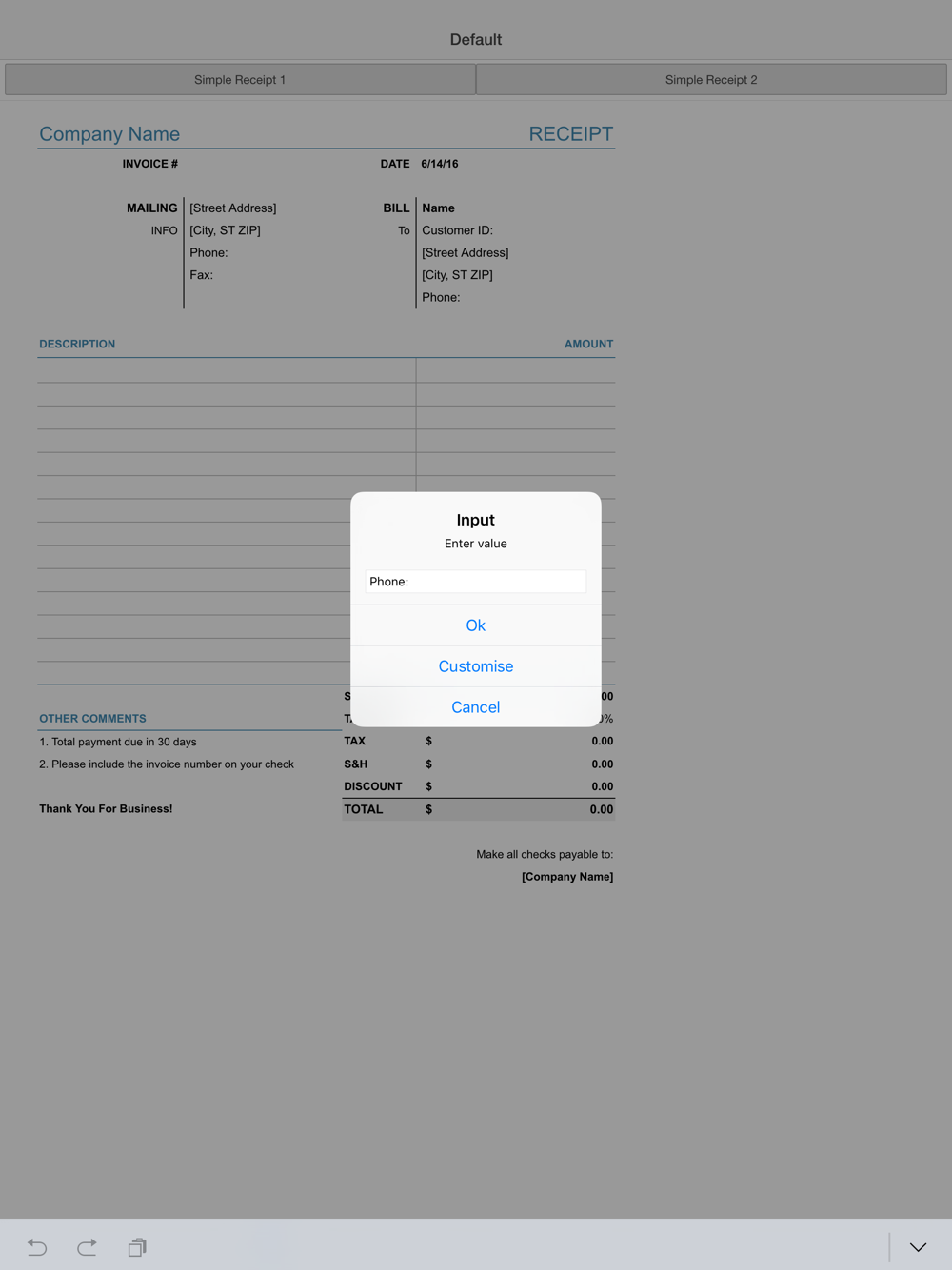 - Simply add the basic information about you and your clients along with specifics of the order.Taxes and totals are automatically calculated for you. So there's no extra work. Just add your receipt items and Company Receipt App does the rest.