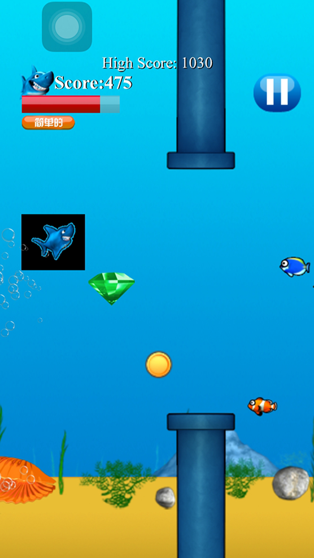 要说到海底的霸王,那还得说到鲨鱼,一切小鱼都是鲨鱼的食物。游戏中,玩家的任务就是控制鲨鱼获取金币和道具,并且躲避大鱼和其他障碍物。