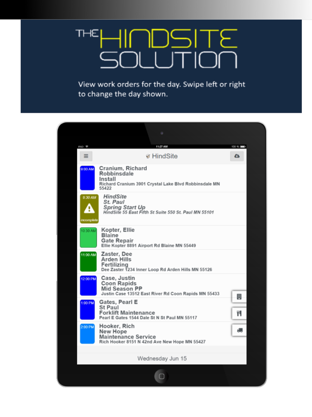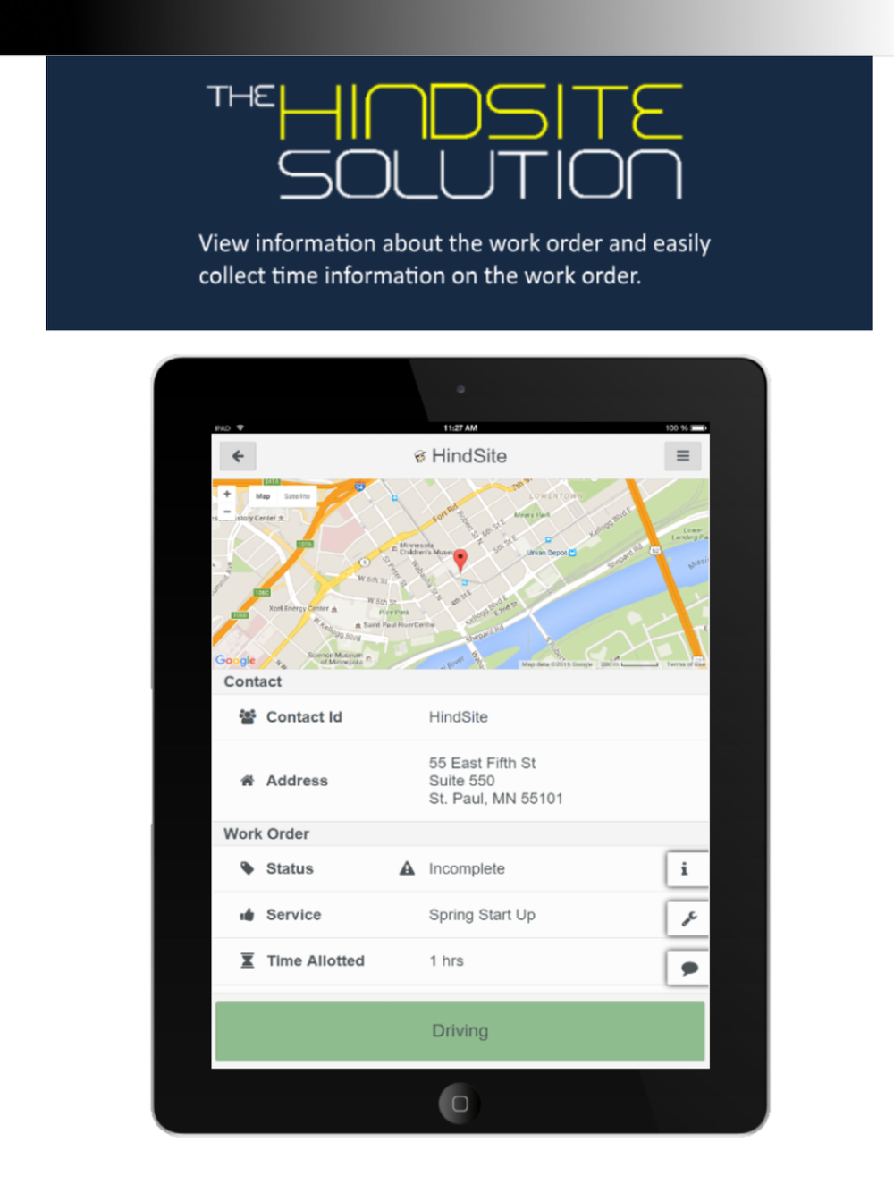 The HindSite Software Field App is built as a companion app to The HindSite Solution. Schedule and route quickly, dispatch sooner, collect accurate information immediately in the field and invoice faster. HindSite makes it easy for you to eliminate waste, get more done in less time and be more profitable.