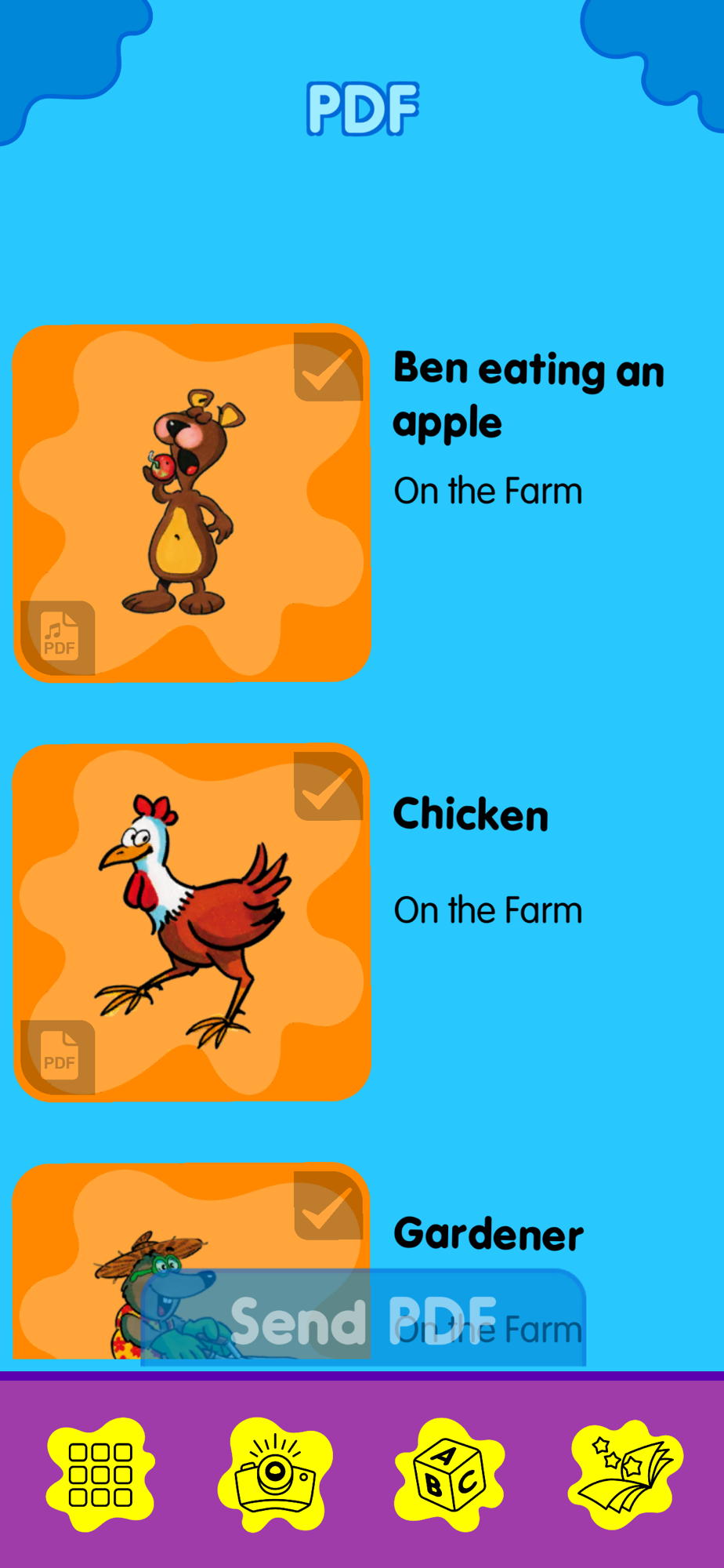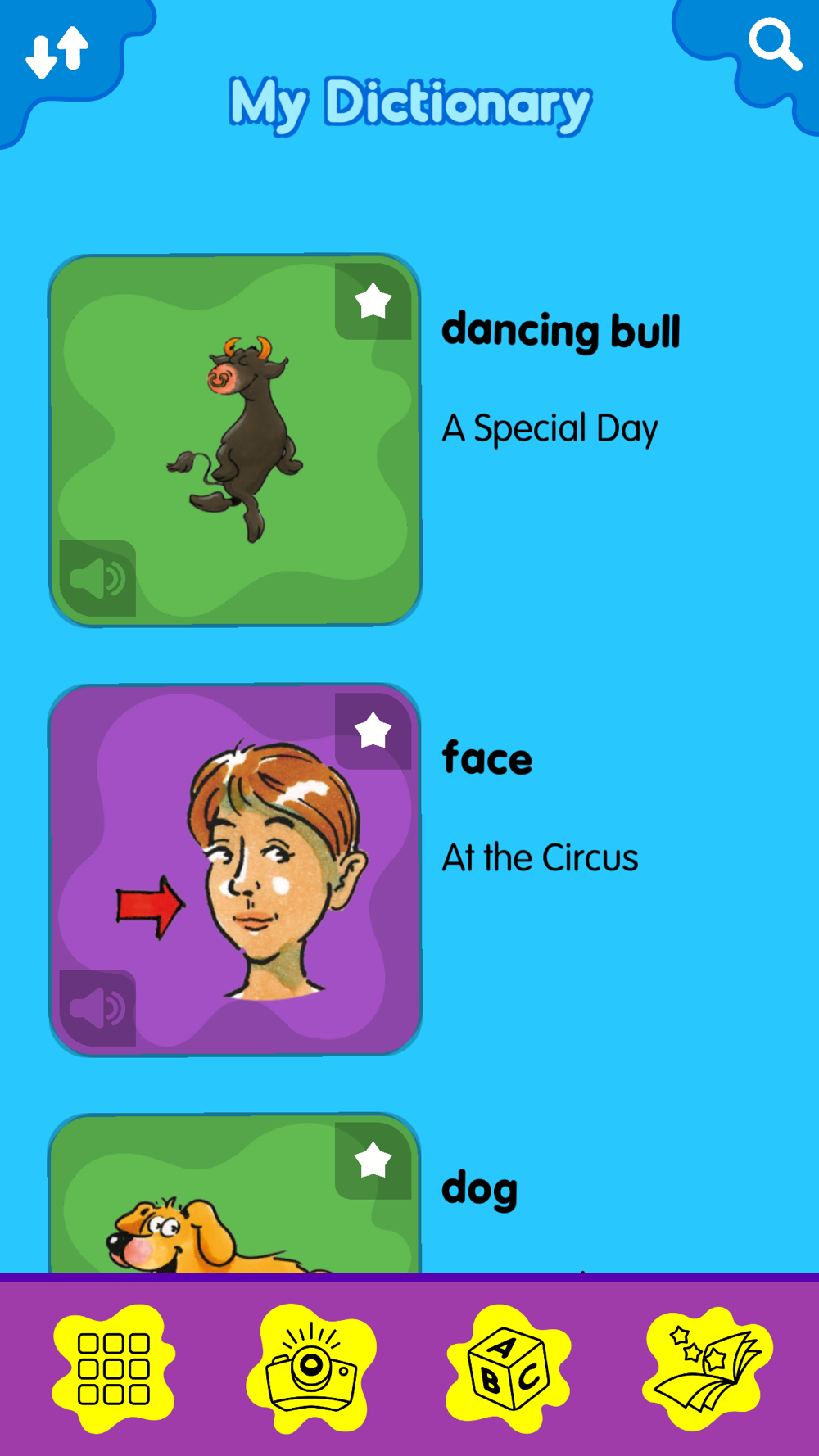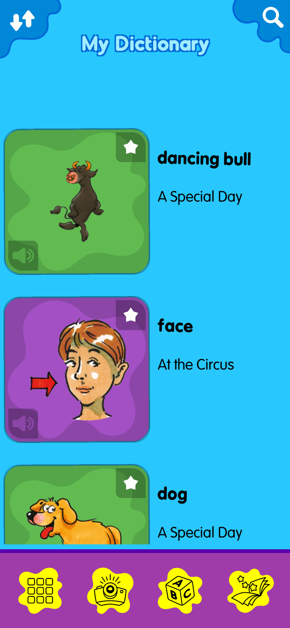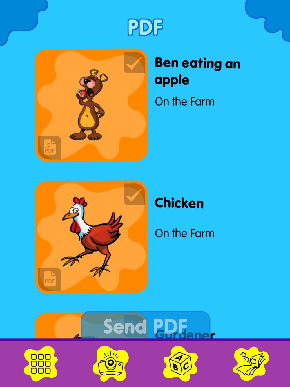 Make learning a multi sensory experience for your child. By scanning many illustrations you will also receive coloring templates which you can print for your child to color. Upon coloring your child can also scan these images and will receive more vocabulary words.