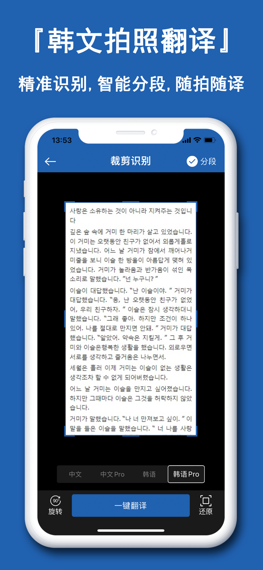 - 高级翻译:支持高精度文字识别(Pro)、智能句子分段、更准确便捷翻译!